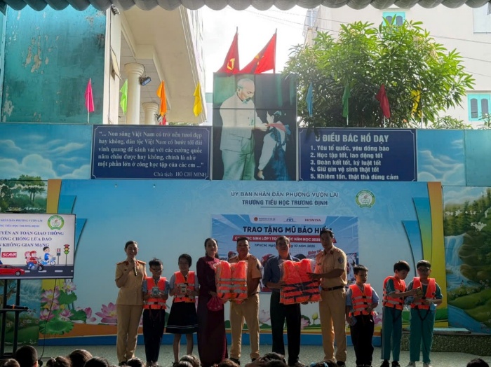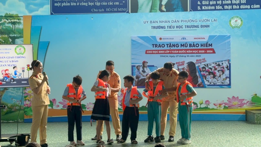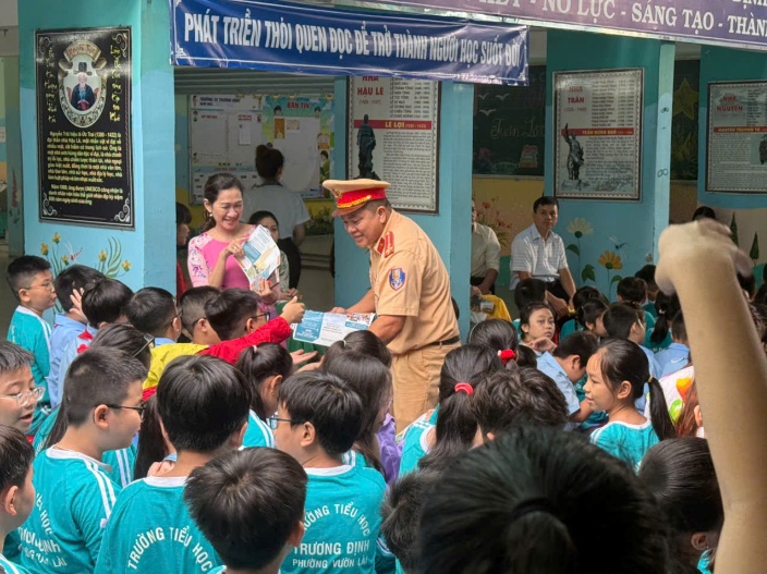 Tiếp tục thực hiện các kế hoạch đảm bảo TTATGT cho lứa tuổi học sinh trên địa bàn Thành phố, nhằm giảm thiểu tối đa tình trạng vi phạm pháp luật, phòng tránh tai nạn, đảm bảo an toàn cho các em khi tham gia giao thông trên các phương tiện thủy nội địa, sáng ngày 27/10/2025, Trạm CSĐT Cát Lái đã phối hợp cùng Đội 3 tổ chức tuyên truyền, phát tài liệu phổ biến, giáo dục pháp luật giao thông đường bộ, đường thủy nội địa, phòng chống lừa đảo trên không gian mạng cho 563 học sinh và 50 giáo viên, Ban giám hiệu, công nhân viên trường Tiểu học Trương Định - P. Vườn Lài.