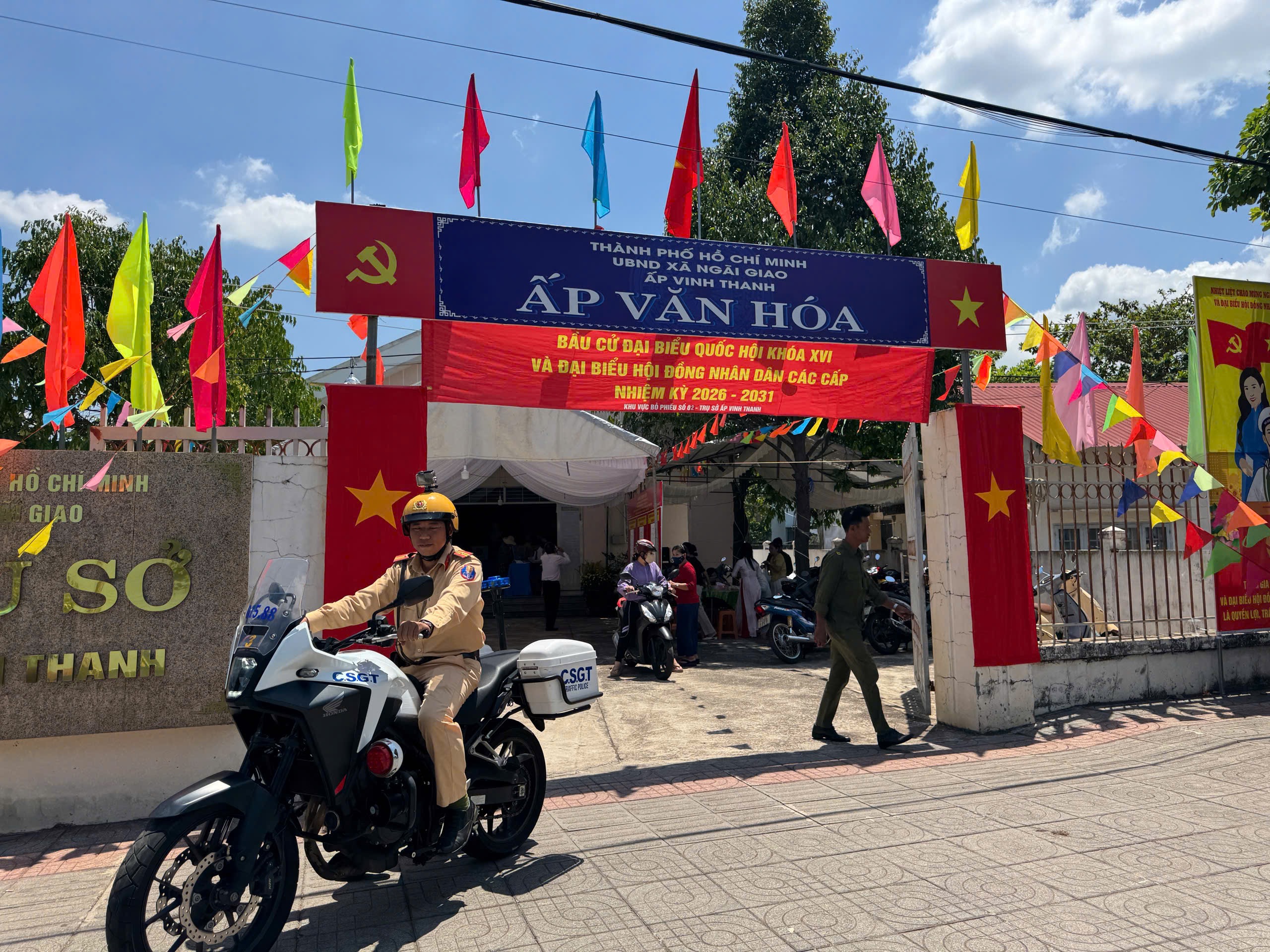 Ngày 15/3/2026, cử tri trên khắp mọi miền Tổ quốc tham gia bầu cử, hoà chung không khí hân hoan và khí thế rộn ràng của ngày hội lớn, lực lượng Cảnh sát giao thông Công an Thành phố Hồ Chí Minh ra sức đảm bảo tuyệt đối an ninh, an toàn trên mọi nẻo đường để người dân yên tâm tham gia thực hiện quyền và nghĩa vụ của mình.