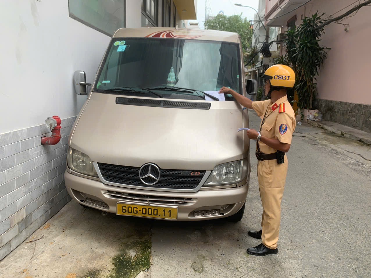 Lực lượng CSGT gắn giấy báo việc ghi hình vi phạm và yêu cầu chấm dứt ngay hành vi vi phạm