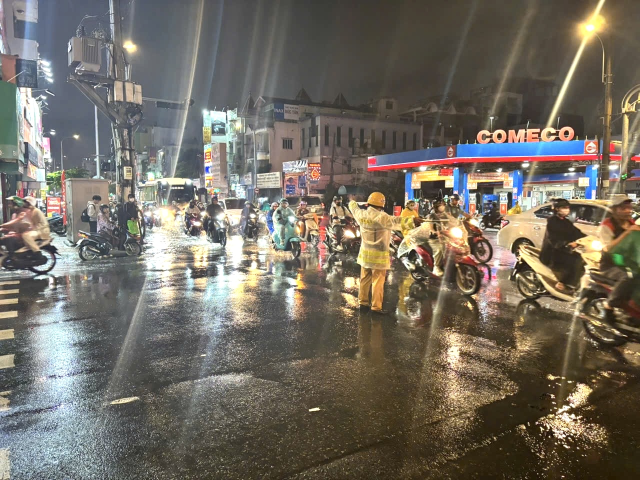 Dự báo tình hình trật tự giao thông địa bàn đảm trách, Đội CSGT Hàng Xanh đã chủ động tăng cường bố trí lực lượng thực hiện điều tiết, phân luồng giao thông tại các giao lộ khi trời mưa lớn, hướng dẫn giúp người tham gia giao thông lựa chọn lộ trình lưu thông hợp lý, tránh các khu vực ngập nước, ùn tắc.
