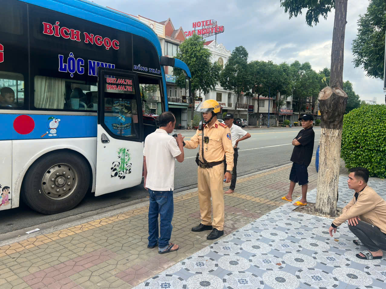Trạm CSGT Quốc lộ 13 kiểm tra nồng độ cồn đối với lái xe khách
