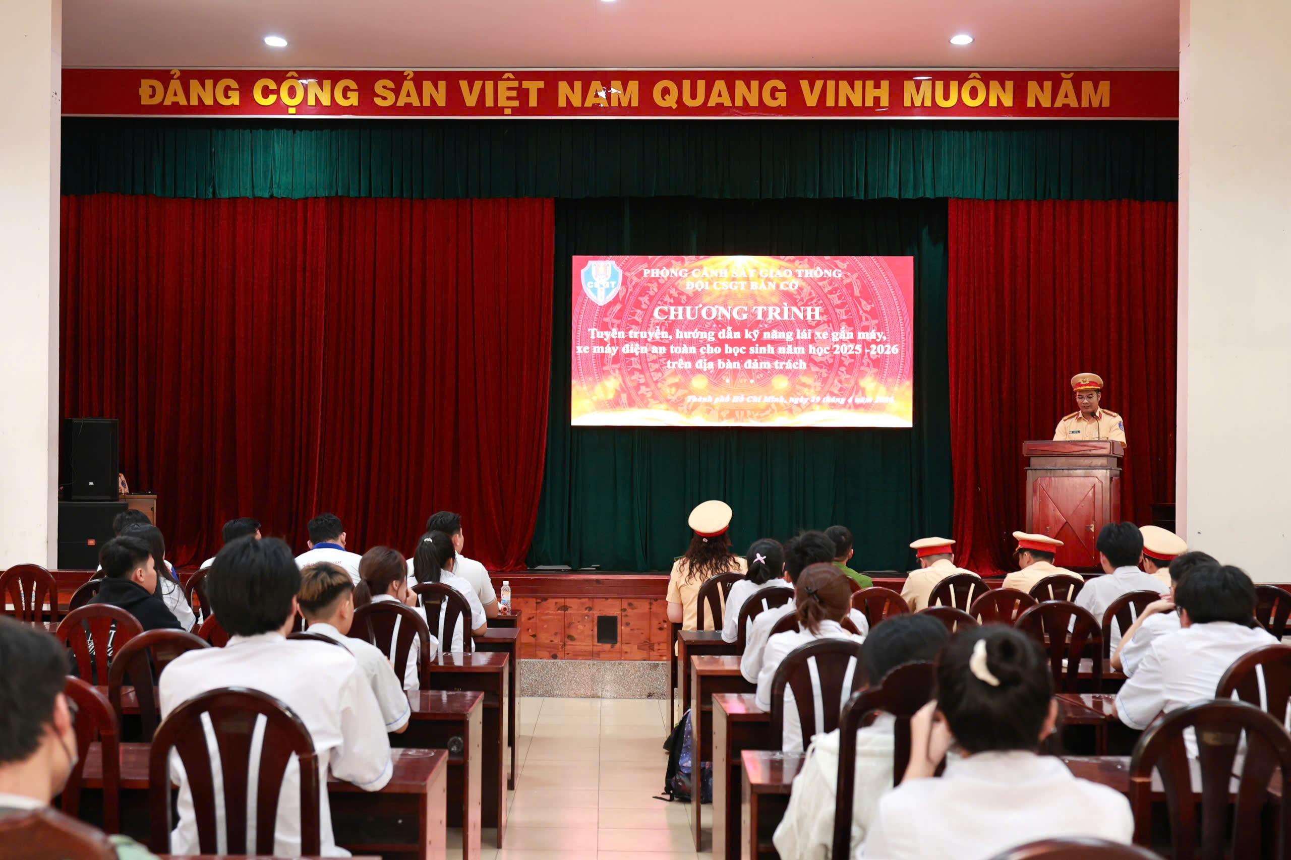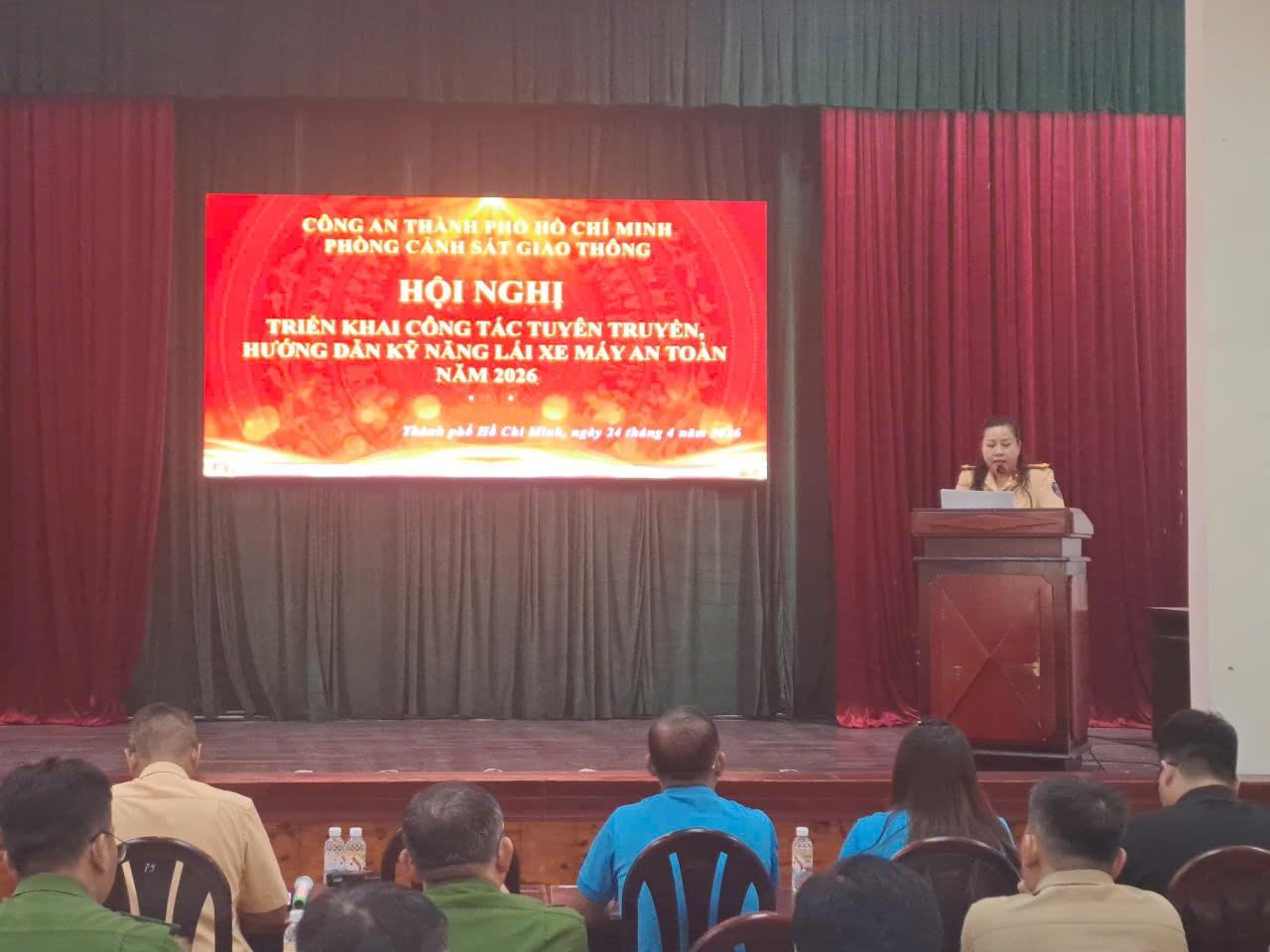 Nhằm trang bị đầy đủ các kiến thức, kỹ năng tham gia giao thông an toàn cho lứa tuổi học sinh; thực hiện nghiêm túc, hiệu quả Kế hoạch phối hợp số 788/KHPH-CATP-SGDĐT ngày 04/02/2026 của Công an TP. Hồ Chí Minh và Sở Giáo dục & Đào tạo TP Hồ Chí Minh về tăng cường công tác tuyên truyền, phổ biến pháp luật về trật tự, an toàn giao thông tại các cơ sở giáo dục và hướng dẫn kỹ năng lái xe gắn máy an toàn cho học sinh, học viên Trung học phổ thông (THPT) và cơ sở Giáo dục nghề nghiệp (GDNN) trên địa bàn Thành phố Hồ Chí Minh, vào ngày 24 tháng 4 năm 2026, Đội CSGT Bàn Cờ đã phối hợp 15 trường Trung học phổ thông và 02 Trung tâm Giáo dục nghề nghiệp – Giáo dục thường xuyên trên địa bàn đảm trách tổ chức Hội nghị triển khai công tác tuyên truyền, hướng dẫn kỹ năng lái xe máy an toàn năm 2026.