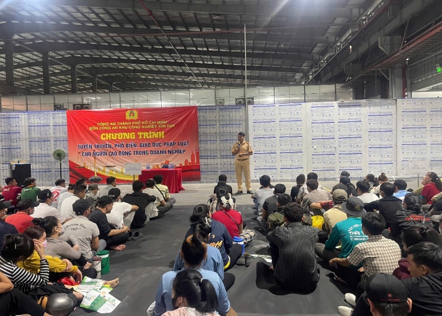 Đội CSGT Bình Triệu đã phối hợp với Đồn Công an Khu công nghiệp Kim Huy triển khai nhiều hoạt động tuyên truyền pháp luật về trật tự, an toàn giao thông (TTATGT) gắn liền với đặc thù công việc của người lao động.