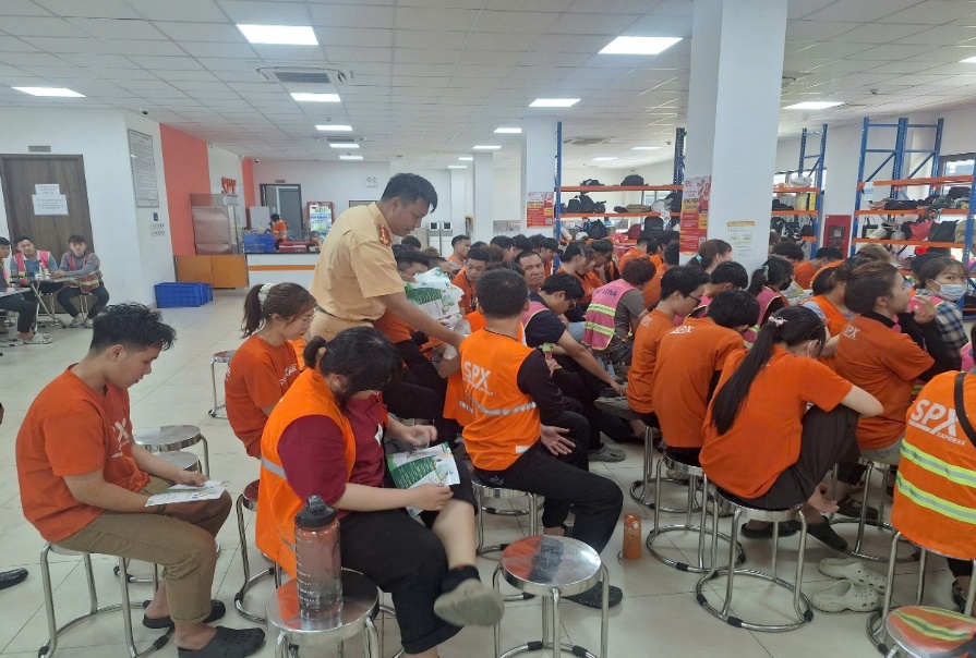 Cụ thể, chiều ngày 24/3/2026, Đội CSGT Bình Triệu đã tổ chức 01 buổi tuyên truyền kết hợp phát tờ rơi an toàn giao thông tại Kho phân loại hàng Bình Dương SPX, thu hút 150 công nhân tham dự.