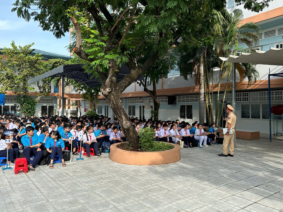 Để triển khai có hiệu quả các văn bản chỉ đạo của lãnh đạo cấp cao về việc đẩy mạnh hoạt động giáo dục, tuyên truyền ý thức chấp hành luật lệ giao thông trong môi trường học đường, Đội CSGT Chợ Lớn đã phối hợp cùng Ban Giám hiệu trường THCS Đoàn Kết tổ chức chương trình giáo dục an toàn giao thông cho toàn thể học sinh nhằm củng cố kiến thức và rèn luyện thói quen tham gia giao thông văn minh.