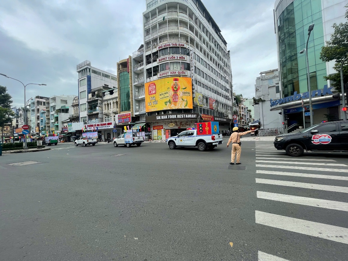 Hình ảnh: Lực lượng CSGT Chợ Lớn tham gia phối hợp phân luồng, điều tiết giao thông xung quanh khu vực tổ chức sự kiện.