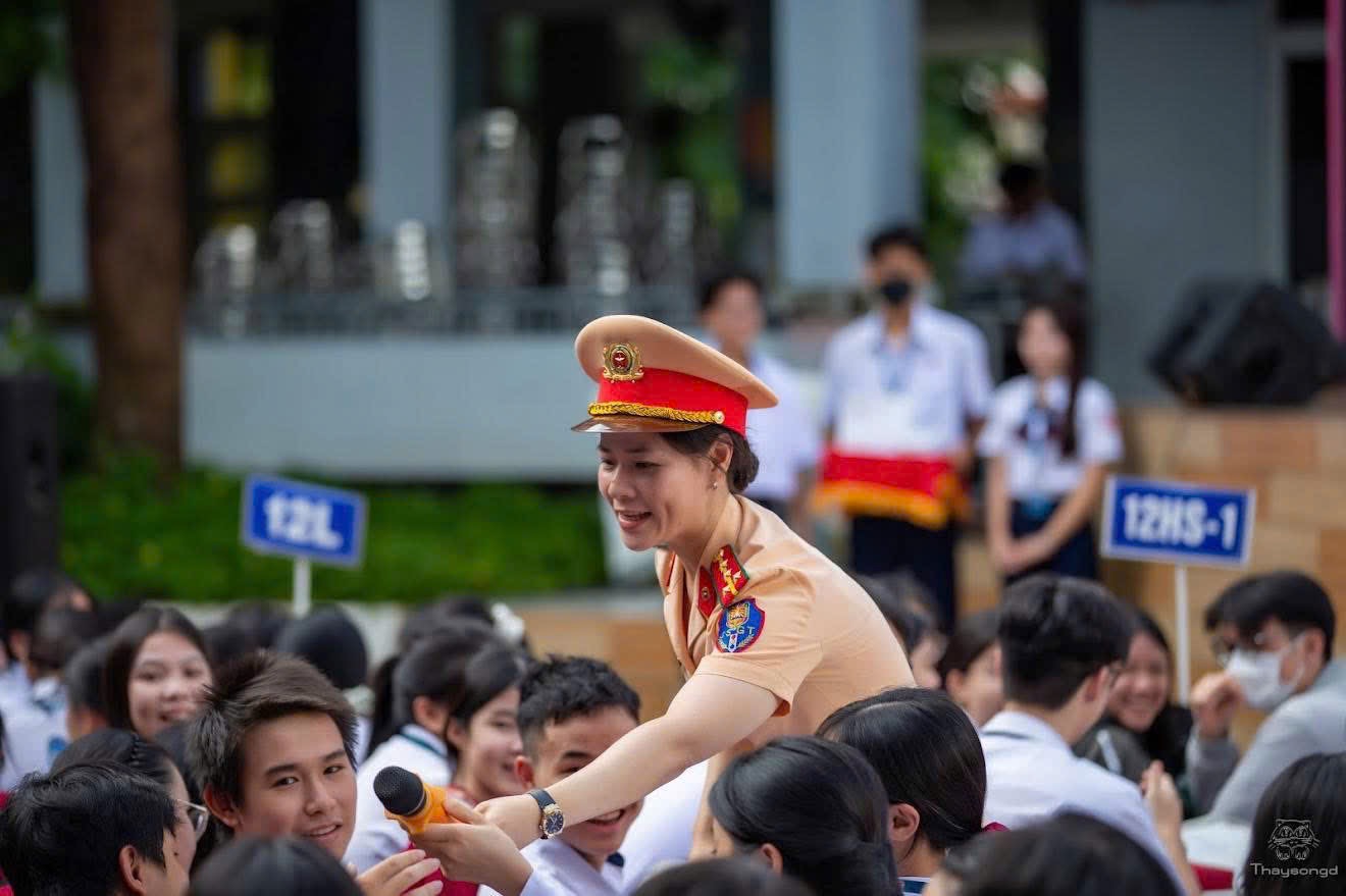 Trên cơ sở đó, công tác bảo đảm TTATGT cho lứa tuổi học sinh cần được thực hiện một cách quyết liệt, thường xuyên, liên tục. Vì vậy, Đội CSGT Hàng Xanh duy trì thực hiện các giải pháp nhằm đảm bảo an toàn giao thông cho lứa tuối học sinh trên địa bàn. Trọng tâm là công tác tuyên truyền tại các trường học với mục tiêu xây dựng văn hoá tự giác chấp hành pháp luật về giao thông cho lứa tuổi học sinh.
