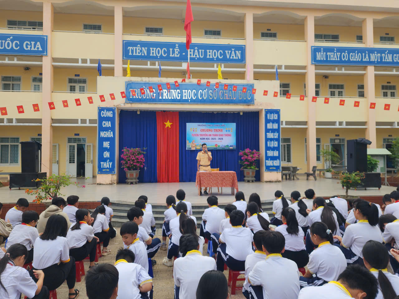 Sáng 27/11/2025, Đội CSGT Rạch Chiếc đã tổ chức tuyên truyền pháp luật về trật tự, an toàn giao thông đường bộ cho hơn 1.200 học sinh đang học tập tại trường Tiểu học Nguyễn Minh Quang (Phường Long Bình, TP.HCM).
