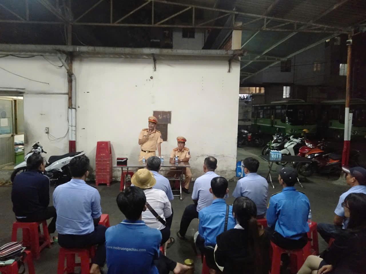 Các tài xế xe buýt tham gia buổi tuyên truyền trực tiếp của Đội CSGT Bàn Cờ