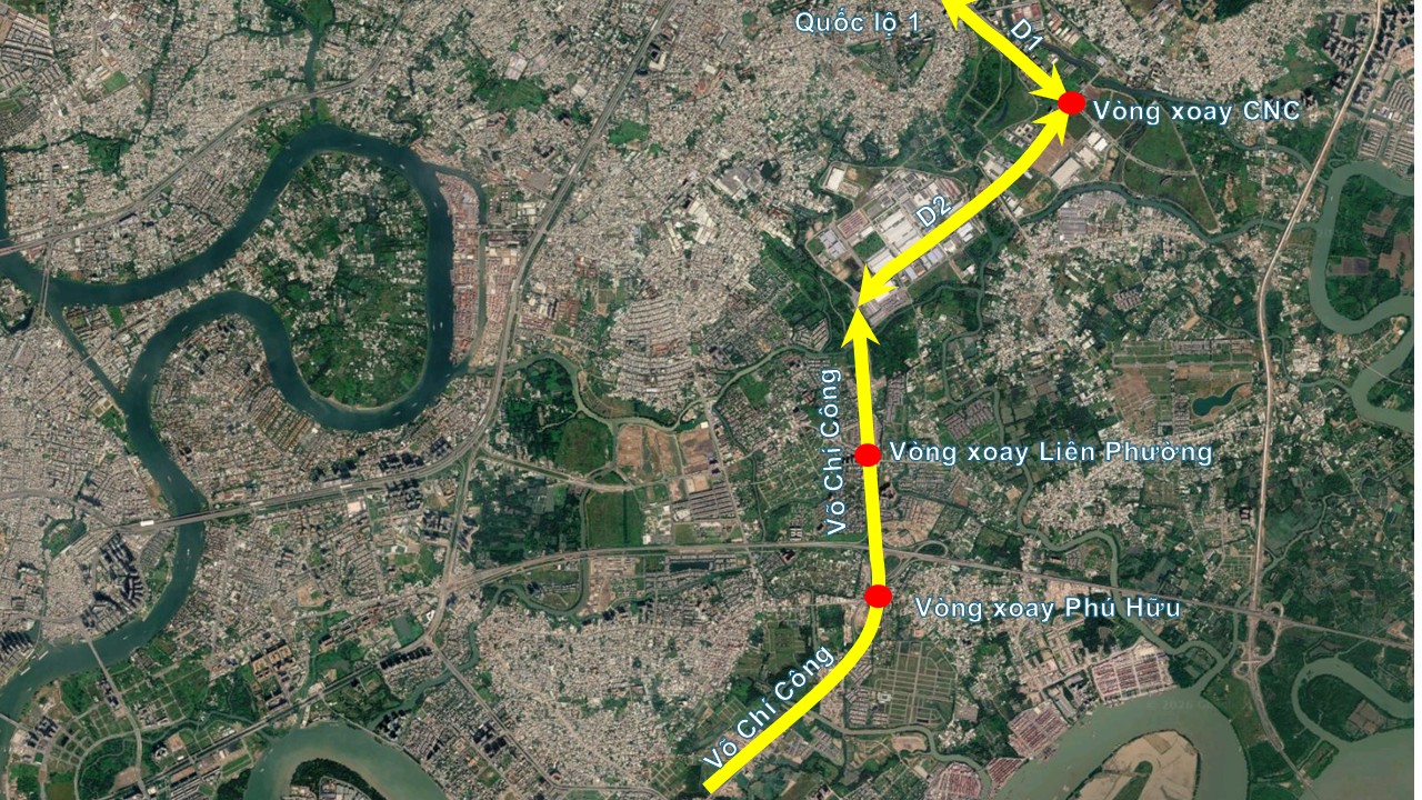 2. Võ Chí Công ➡ Vòng xoay Phú Hữu ➡ Cao tốc TP.HCM - Long Thành - Dầu Giây