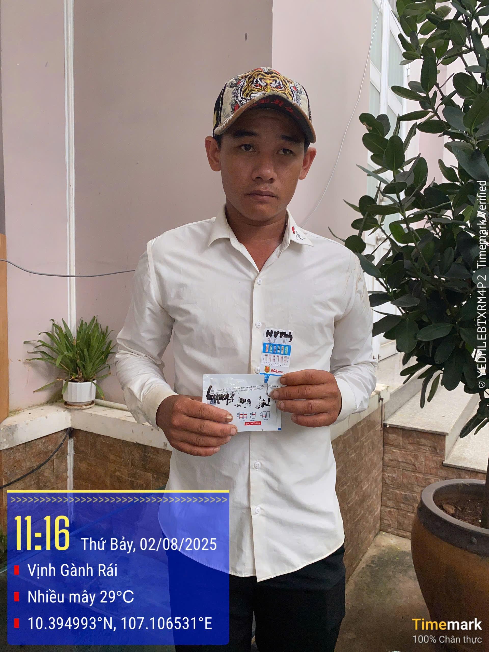 Vào lúc 07h 05’ ngày 21/07/2025 tại khu vực Rạch Bến Đình, phường Vũng Tàu, TP.Hồ Chí Minh tổ công tác thuộc đội Cảnh sát đường thủy số 4, Phòng PC08 tiến hành kiểm tra phương tiện TG-92844 TS và xét nghiệm nước tiểu đối với thuyền viên Trương Hoàng Duy, sinh năm: 1988, HKTT: ấp Hòa thân, phường Sơn Qui, tỉnh Đồng Tháp và cho kết quả dương tính với ma túy dạng đá.