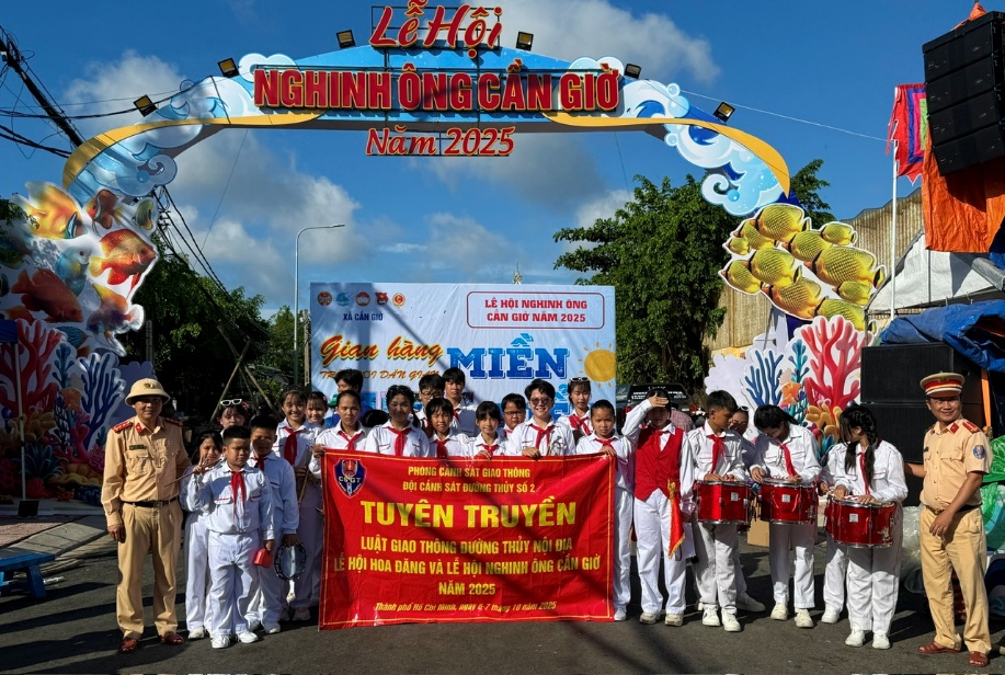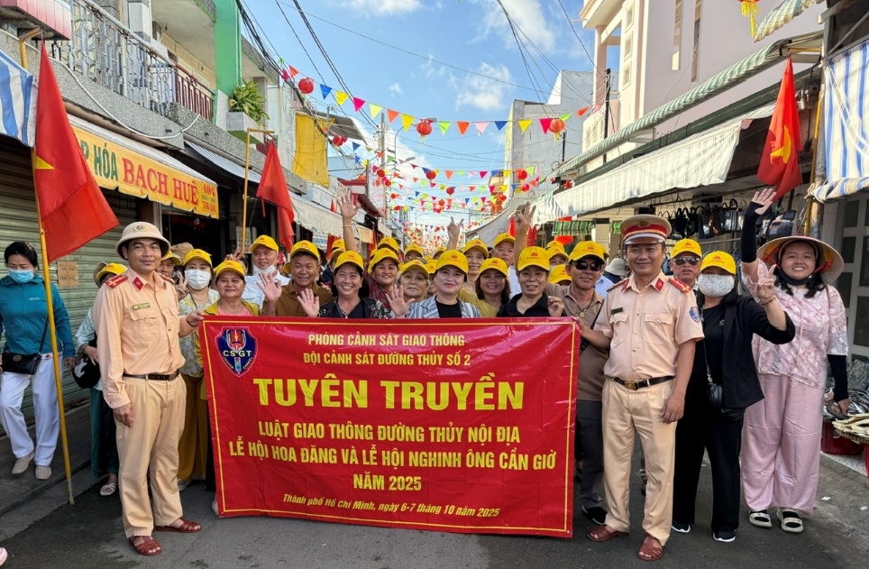 Hòa cùng không khí náo nhiệt, nhằm góp phần nâng cao ý thức chấp hành pháp luật về đảm bảo TTATGT của người dân và du khách đến tham dự Lễ hội, sáng ngày 6 và 7/10/2025 Đội CSĐT số 2 tổ chức tuyên truyền Luật giao thông đường thuỷ nội địa cho hơn 900 lượt người là người dân địa phương, du khách, người lái phương tiện và chủ phương tiện thủy nội địa tại Lễ hội Hoa đăng và Lễ Nghinh Ông Cần Giờ năm 2025.