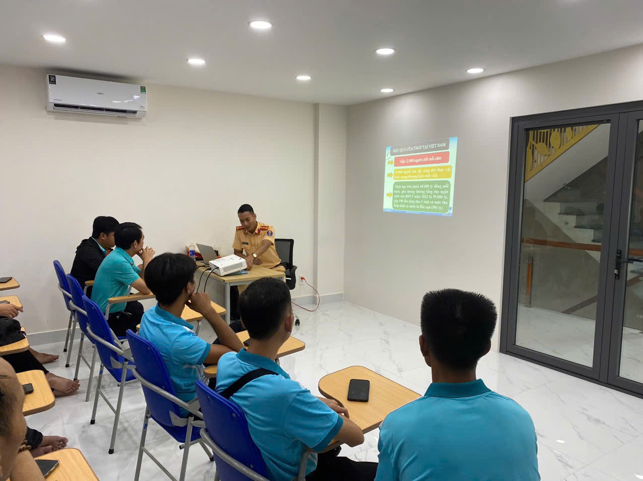 Trước đó, vào sáng ngày 28/08/2025, Đội CSGT số 2 đã tổ chức tuyên truyền, tập huấn cho đội ngũ quản lý, tổ trưởng lái xe của Taxi Xanh SM chi nhánh Bà Rịa – Vũng Tàu tại trụ sở Công ty (phường Phước Thắng, TP. Hồ Chí Minh) với sự tham dự của hơn 100 người tham dự. Tại hội nghị, báo cáo viên đã phổ biến quy định của pháp luật về trật tự an toàn giao thông đường bộ, các quy tắc tham gia giao thông an toàn, lưu ý đối với hoạt động kinh doanh vận tải hành khách và loại hình taxi điện sử dụng nền tảng công nghệ. Báo cáo viên đã sử dụng phương pháp tuyên truyền trực quan sinh động, trình chiếu và phân tích cụ thể các hành vi vi phạm thường gặp trong hoạt động vận tải hành khách bằng taxi như sử dụng điện thoại khi lái xe, chạy quá tốc độ, đón trả khách sai quy định,… để lái xe nhận thức rõ và rút kinh nghiệm, nâng cao ý thức chấp hành pháp luật. Báo cáo viên cũng tập trung cảnh báo nguyên nhân dẫn đến các vụ tai nạn giao thông xảy ra trên địa bàn, dẫn chứng một số tình huống thực tế và khuyến cáo các giải pháp phòng ngừa, hướng dẫn kỹ năng xử lý tình huống khi gặp sự cố, đề cao trách nhiệm và đạo đức nghề nghiệp của đội ngũ lái xe, góp phần bảo đảm an toàn cho hành khách, tài xế và những người cùng tham gia giao thông.