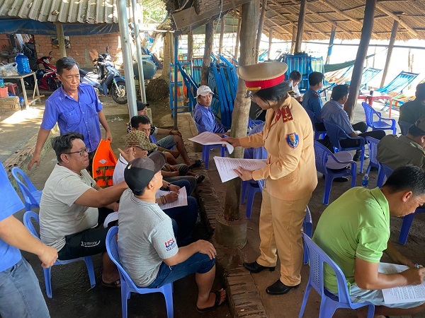 (Ảnh: Trạm CSĐT Cát Lái tuyên truyền trực tiếp cho người dân là chủ bến, thuyền trưởng, thuyền viên tại Bến đò Hội Sơn sáng 24/02/2024)
