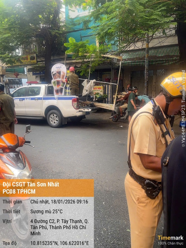 Đội CSGT Tân Sơn Nhất đã phối hợp Phòng PC06, Công an phường Tây Thạnh thực hiện các đợt tuyên truyền kết hợp kiểm tra, xử lý tình trạng lấn chiếm, sử dụng trái phép lòng đường, vỉa hè, tình trạng ô tô dừng đỗ trái quy định pháp luật nhằm thiết lập trật tự công cộng, trật tự đô thị tại các tuyến đường, khu vực trường học và các điểm chợ tự phát - những nơi thường xuyên xảy ra tình trạng lấn chiếm vỉa hè, lòng đường; các tuyến đường xung quanh khu vực chung cư Tây Thạnh; tuyến đường Tây Thạnh,… Đây chủ yếu là các tuyến đường "điểm nóng" xảy ra tình trạng lấn chiếm nhiều năm nay do tập trung nhiều công nhân. Lực lượng chức năng phát hiện nhiều người dân bày bán rau củ, trái cây xuống lòng đường. Ngoài ra rất nhiều xe máy do người bán, người mua dựng tràn lan dưới lòng đường gây cản trở giao thông, tiềm ẩn nguy cơ tai nạn;
