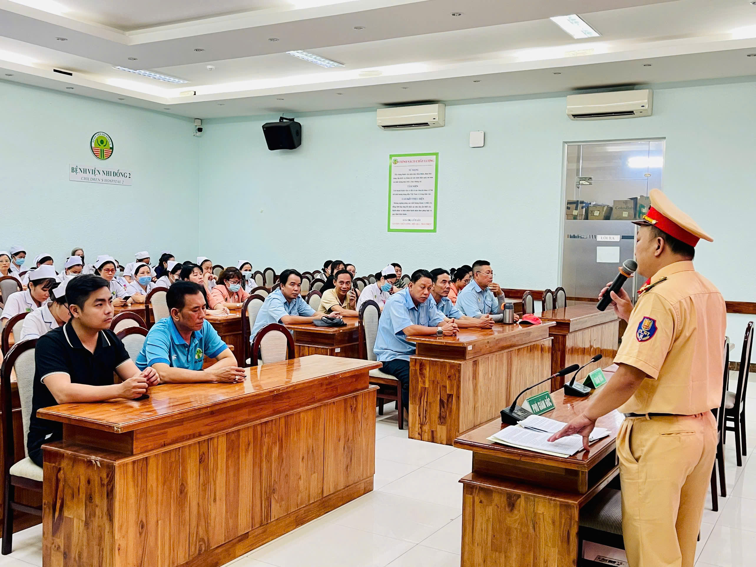 Vừa qua, Đội CSGT Bến Thành, Phòng CSGT phối hợp với Bệnh viện Nhi đồng 2, Thành phố Hồ Chí Minh tổ chức hội nghị tuyên truyền, phổ biến pháp luật về trật tự, an toàn giao thông cho 250 nhân viên y tế (bác sỹ, y tá, điều dưỡng) và tài xế lái xe cứu thương của bệnh viện.
