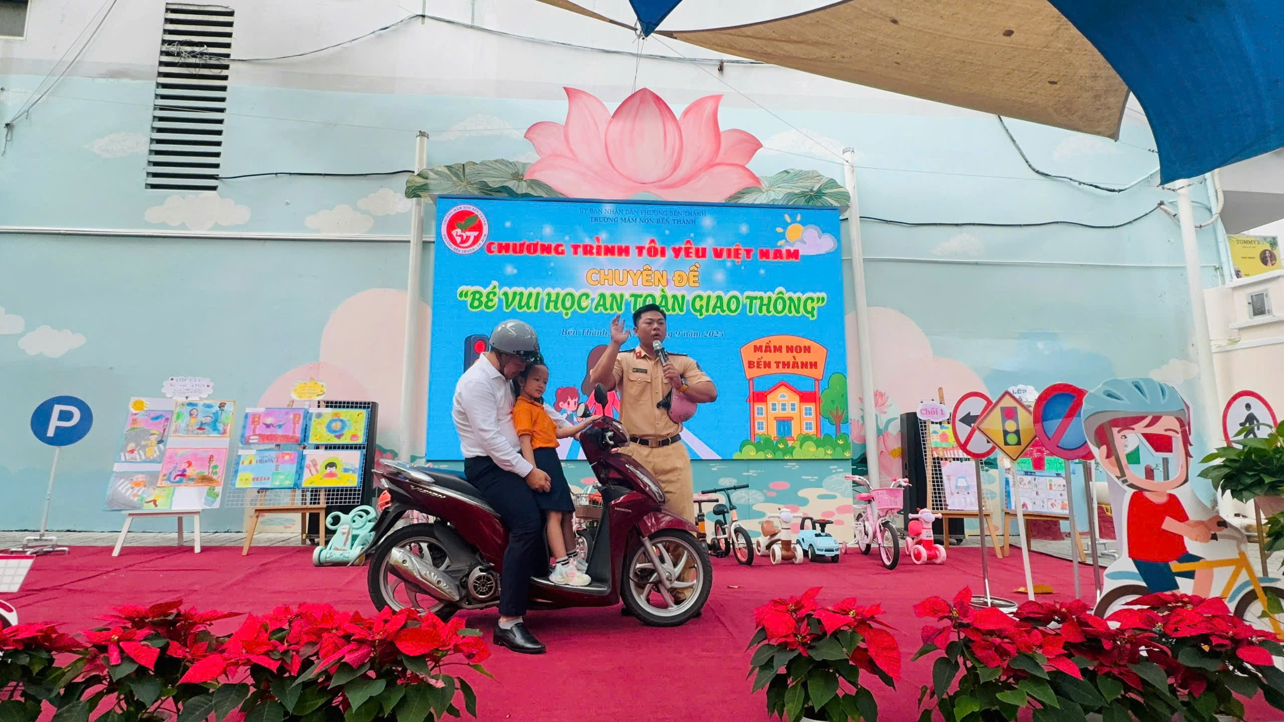 Là hoạt động thường niên tại trường Mầm non Bến Thành, năm học 2025-2026, Đội CSGT Bến Thành phối hợp cùng Ban Giám hiệu nhà trường tổ chức chương trình “Tôi yêu Việt Nam” với chủ đề “Bé vui An toàn giao thông” cho các em mầm non trong độ tuổi từ 04 đến 06 tuổi đang theo học tại trường và toàn thể giáo viên, phụ huynh học sinh.