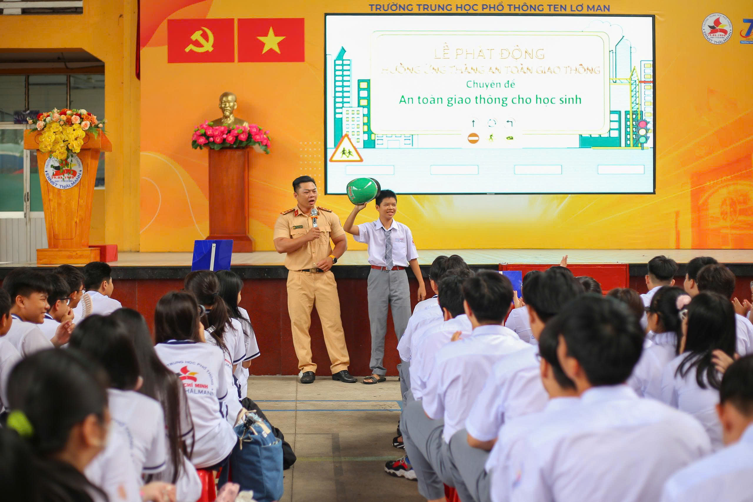 Trong buổi học đầu tuần của Tháng 9/2025, tại trường Trung học phổ thông Ernst Thalmann, Đội CSGT Bến Thành, Phòng CSGT đã có buổi tuyên truyền, phổ biến pháp luật về trật tự, an toàn giao thông cho 1.300 giáo viên và học sinh của trường.