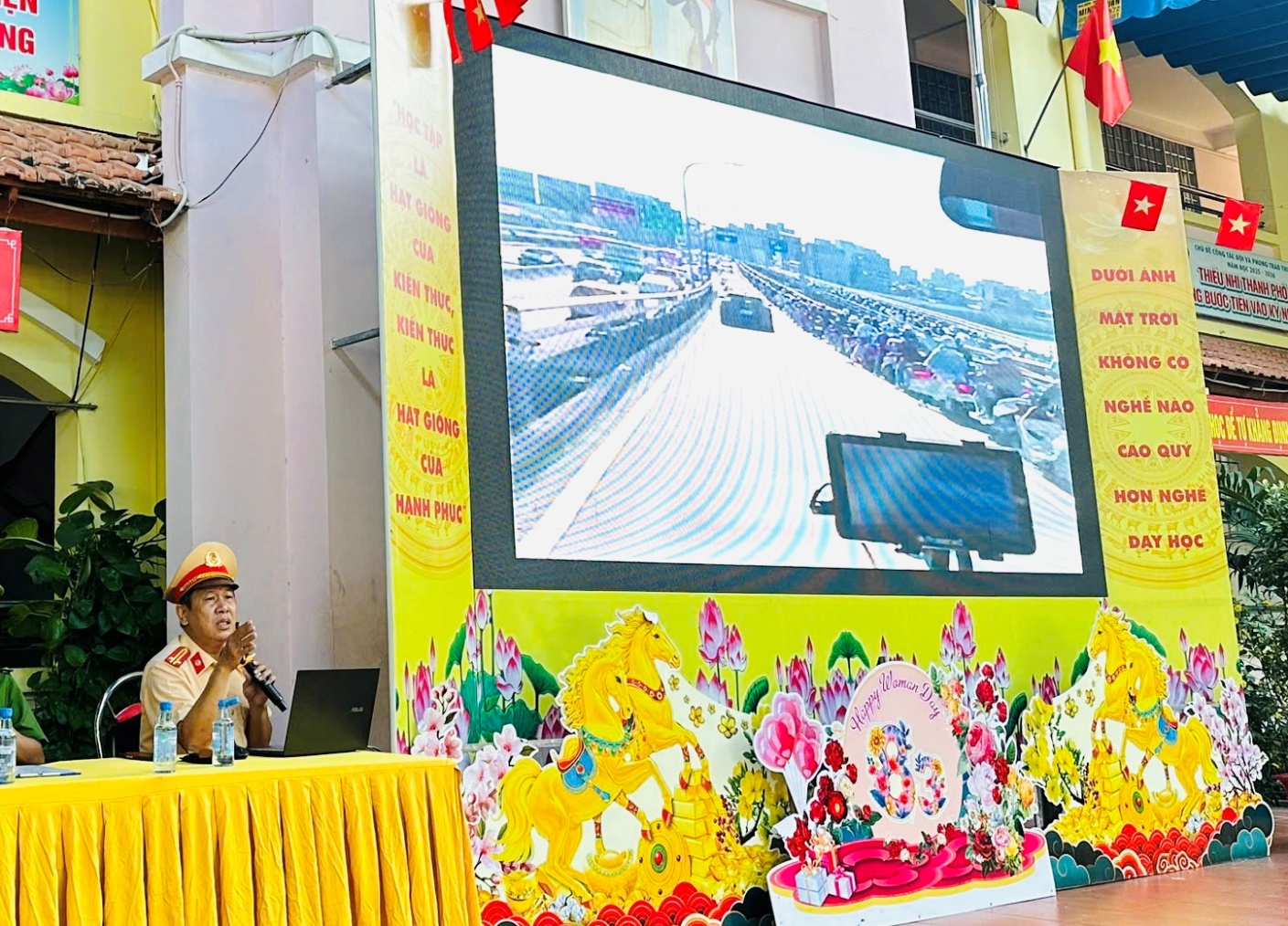 Tại buổi tuyên truyền, Trung tá Nguyễn Chánh Trung cán bộ Đội CSGT Cát Lái đã trực tiếp phổ biến các nội dung cơ bản của Luật Trật tự an toàn giao thông đường bộ, tập trung vào các vấn đề sát sườn với học sinh và phụ huynh như: