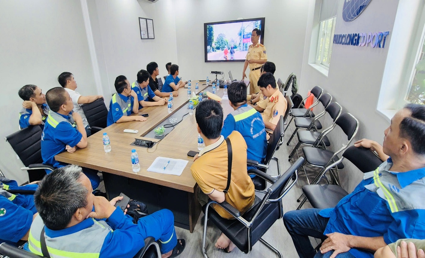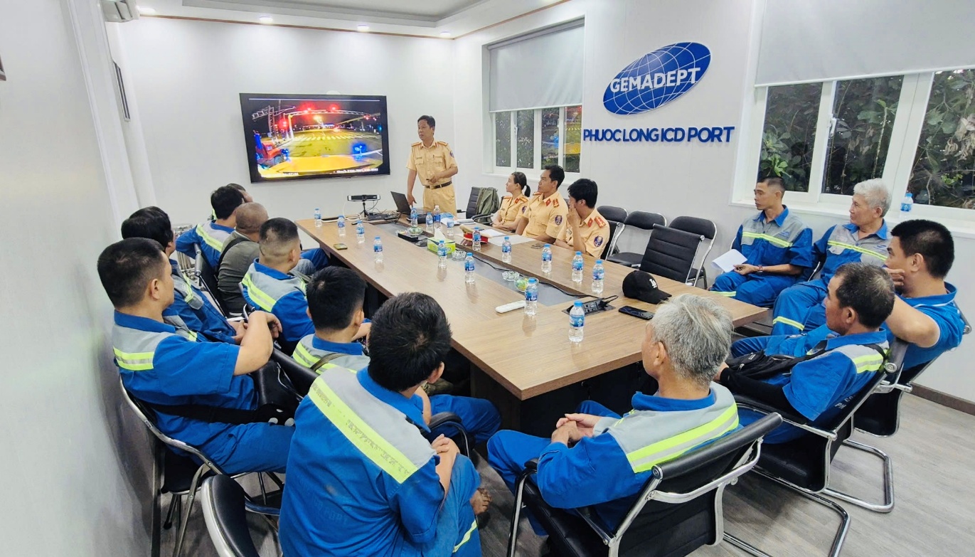Vừa qua, Đội CSGT Cát Lái thuộc Phòng CSGT - Công an TP.HCM đã phối hợp cùng Ban Lãnh đạo ICD Phước Long tổ chức buổi tuyên truyền, phổ biến pháp luật về trật tự, an toàn giao thông và tập huấn kỹ năng lái xe an toàn cho hơn 40 nhân viên là tài xế xe container và xe tải nặng đang làm việc tại đây.