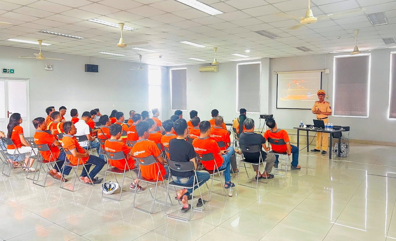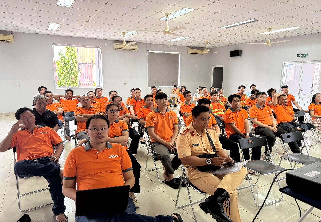 Đội CSGT Cát Lái phối hợp cùng Trạm Cảnh sát đường thủy Cát Lái đã tổ chức buổi tuyên truyền phổ biến pháp luật và tập huấn kỹ năng an toàn giao thông cho đội ngũ cán bộ công nhân viên (CBCNV) và tài xế xe container, xe tải nặng tại ICD Transimex.