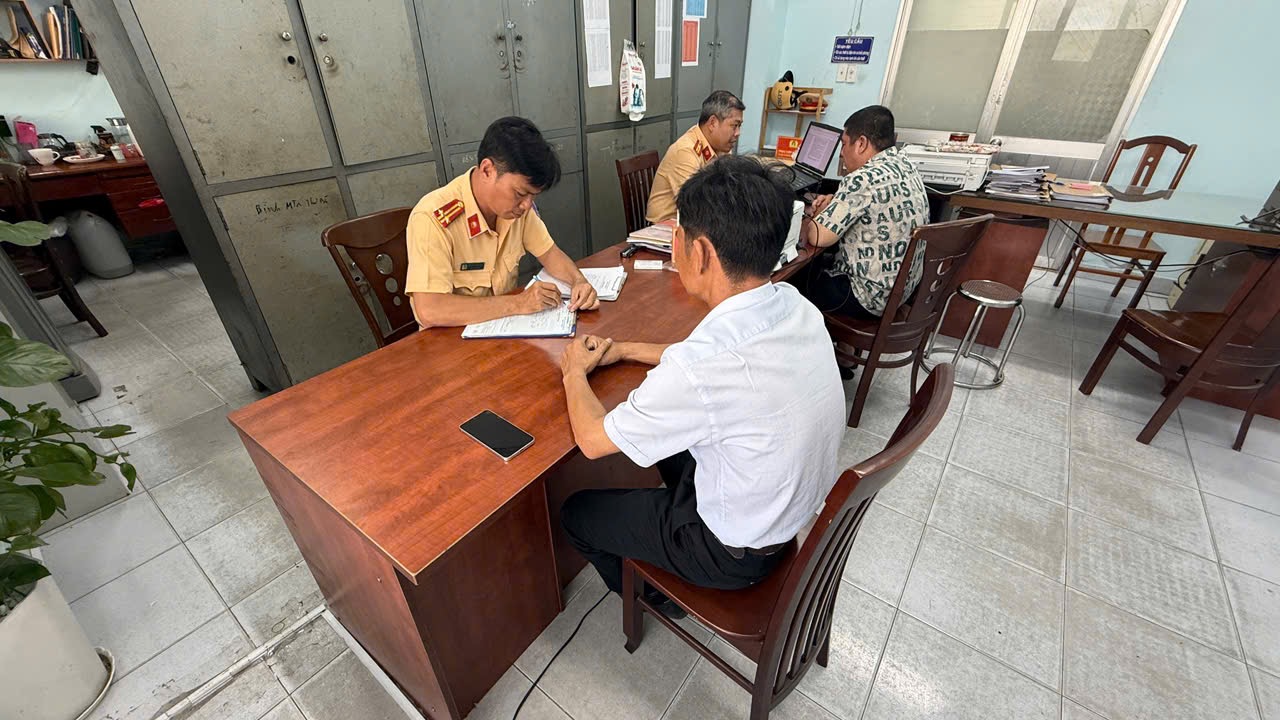 Các CBCS CSGT Cát Lái đang xử lý đối với các trường hợp bị phạt nguội