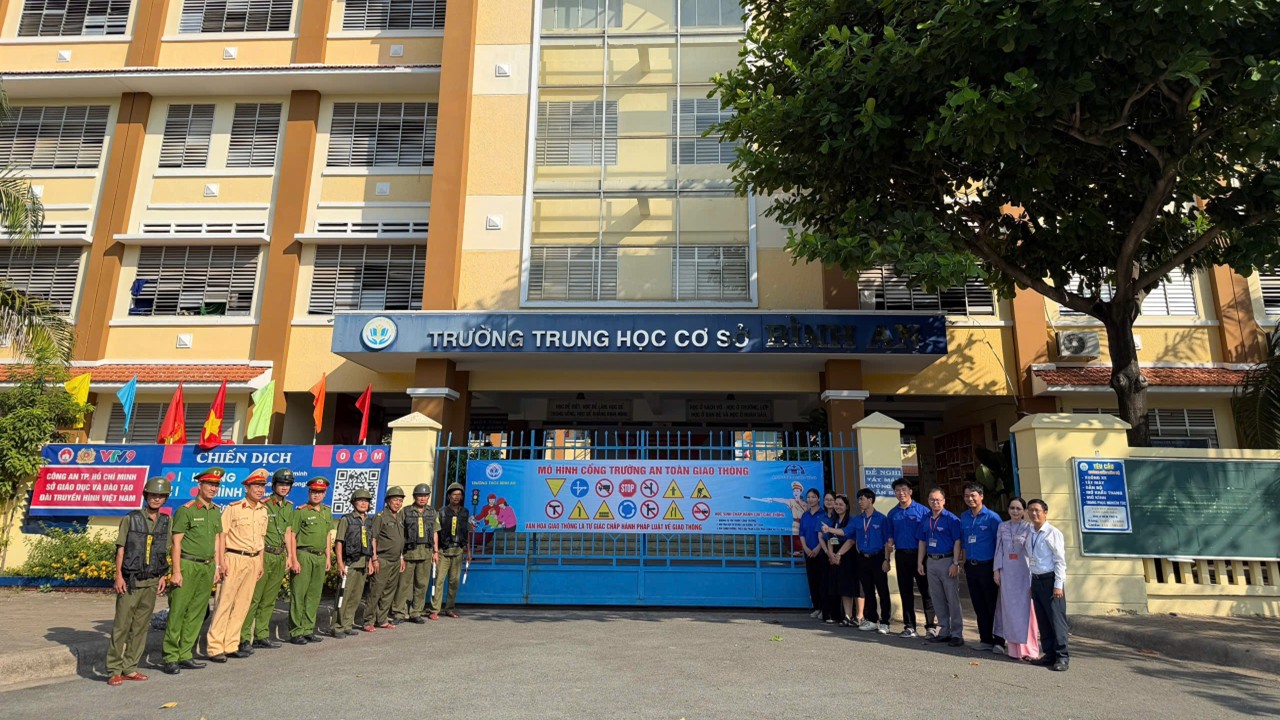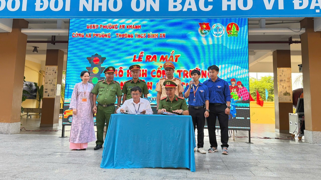 Đội CSGT Cát Lái (Phòng PC08) phối hợp cùng Công an phường An Khánh và Ban Giám hiệu trường THCS Bình An đã tổ chức buổi tuyên truyền Luật Trật tự, an toàn giao thông (TTATGT) đường bộ, đồng thời chính thức ra mắt mô hình “Cổng trường ATGT”.