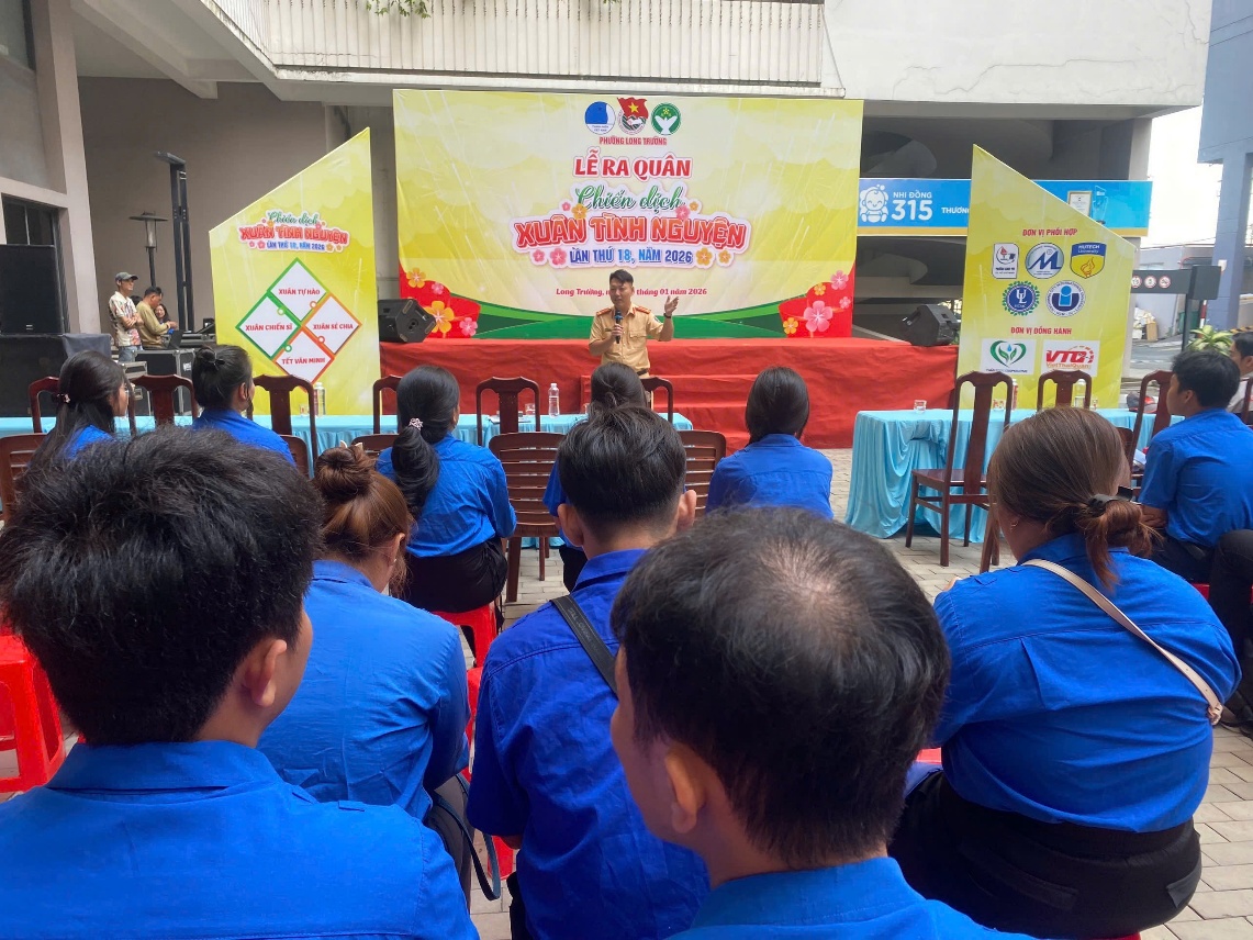 Sáng ngày 10/01/2026, trong khuôn khổ ngày hội “Chiến dịch Xuân tình nguyện lần thứ 18”, Đội CSGT Cát Lái đã phối hợp cùng Đoàn Thanh niên phường Long Trường và Công ty Honda Việt Thái Quân tổ chức chương trình tuyên truyền pháp luật và tập huấn kỹ năng lái xe an toàn cho 150 đoàn viên, thanh niên trên địa bàn.