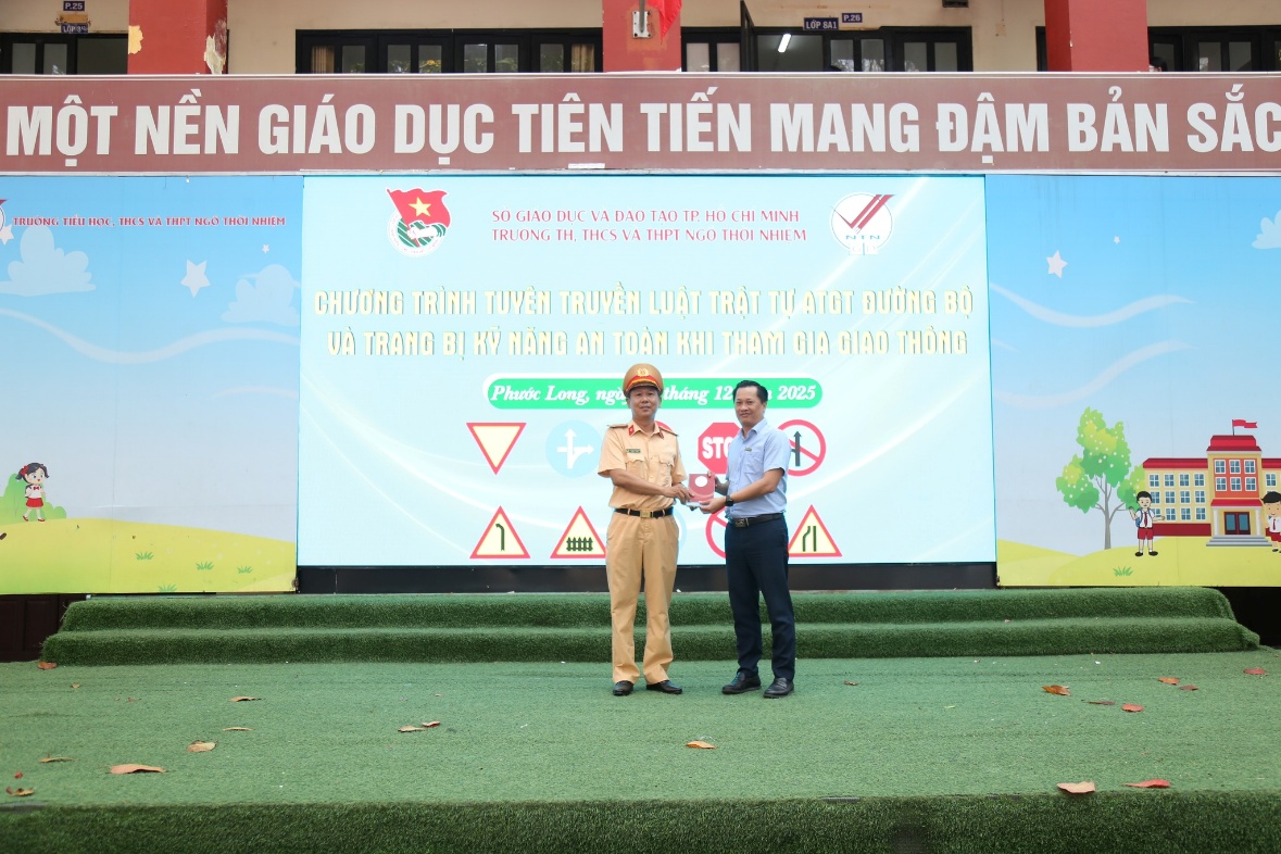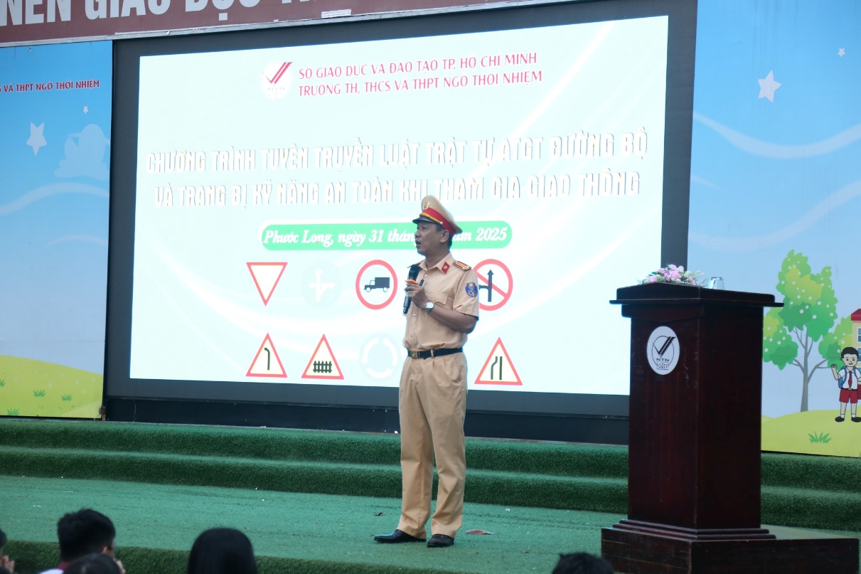 Đại diện Ban Giám hiệu Trường Ngô Thời Nhiệm – Thầy Lê Văn Công Phó hiệu trưởng nhà trường chia sẻ: "Việc phối hợp cùng Đội CSGT Cát Lái vào dịp đầu năm 2026 là rất kịp thời. Những kiến thức này không chỉ là hành trang giúp các em an toàn trong các kỳ nghỉ sắp tới mà còn từng bước xây dựng ý thức trách nhiệm, giúp các em trở thành những công dân văn minh."