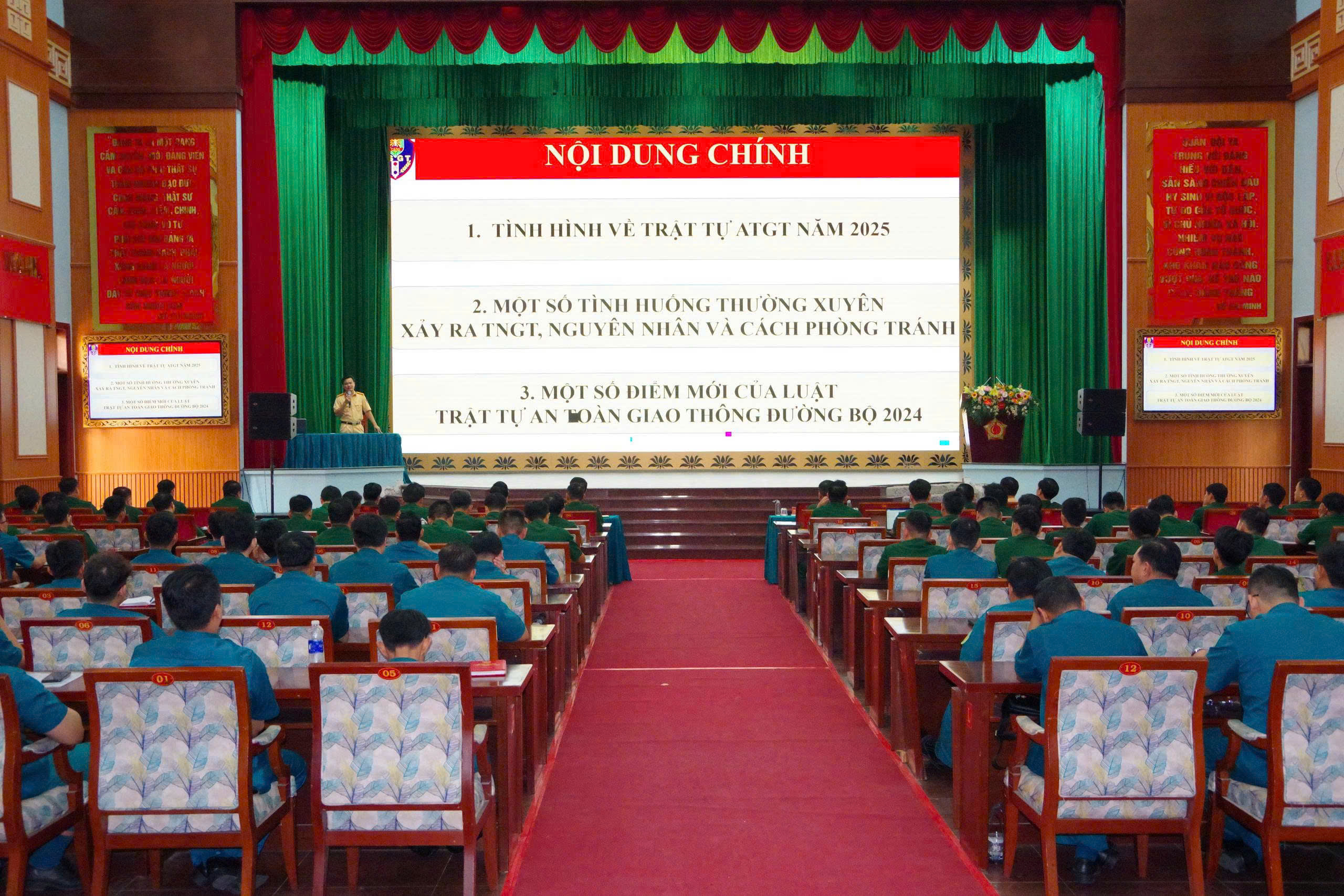 Cùng với đó, lực lượng Cảnh sát giao thông đã tập trung phổ biến những nội dung cơ bản, điểm mới của Luật Trật tự, an toàn giao thông đường bộ và các văn bản hướng dẫn thi hành; làm rõ trách nhiệm của người tham gia giao thông, trách nhiệm của các lực lượng trong công tác bảo đảm trật tự an toàn giao thông; đồng thời, lồng ghép các tình huống thực tiễn, ví dụ minh họa cụ thể nhằm giúp cán bộ, chiến sĩ dễ tiếp thu. Qua đó, góp phần nâng cao ý thức tự giác chấp hành pháp luật và trách nhiệm nêu gương của cán bộ, chiến sĩ lực lượng vũ trang khi tham gia giao thông.