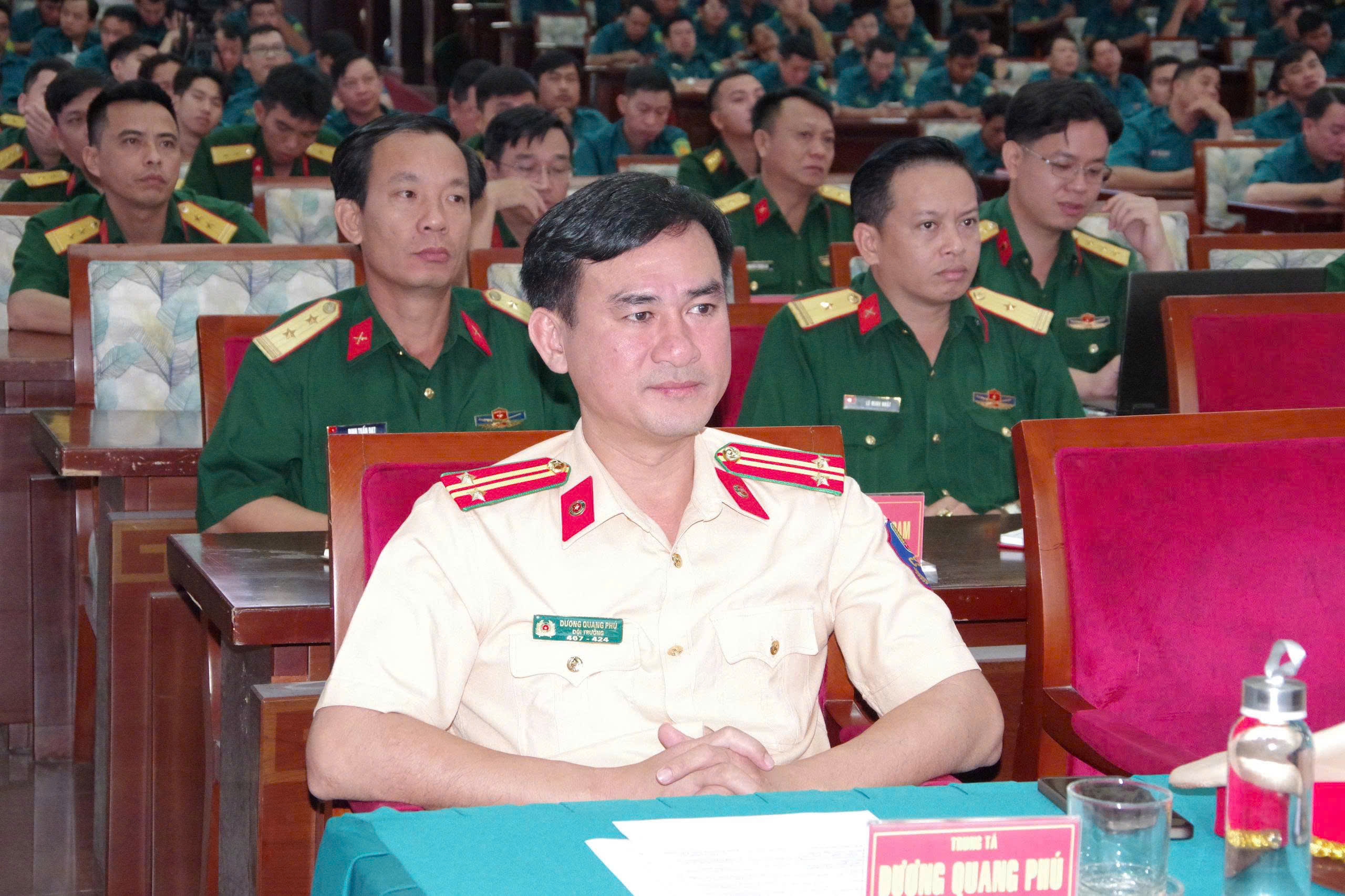 Đồng chí Trung tá Dương Quang Phú – Phó Đội trưởng Đội Tuyên truyền, điều tra giải quyết tai nạn và xử lý vi phạm giao thông – Phòng CSGT tham dự buổi Tập huấn