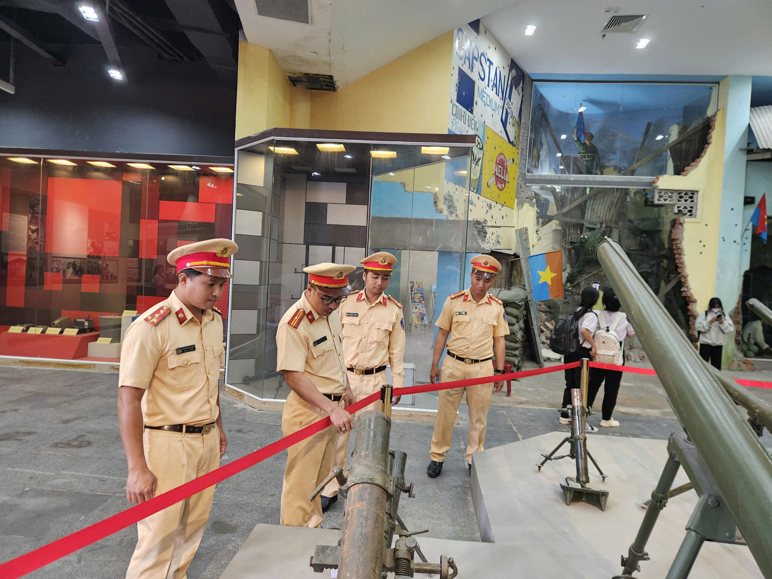 Ảnh: Đoàn viên thanh niên Phòng CSGT tham quan Khu truyền thống Cách mạng
