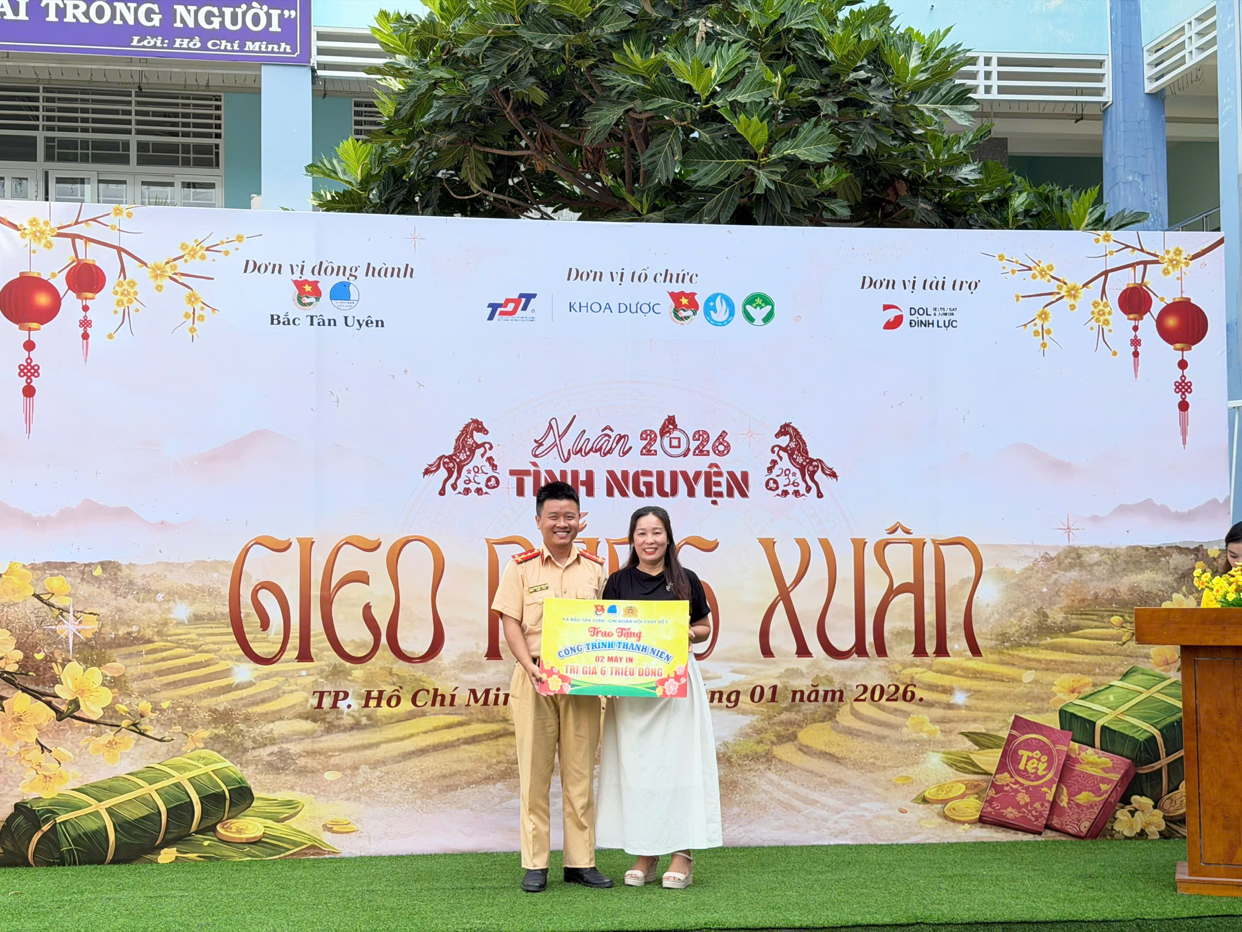 Cùng với đó, ngày 25/01/2026, Cụm Chi đoàn 4 – Đoàn Phòng CSGT đã phối hợp với Đoàn xã Bình Khánh, Đoàn Sở Y tế, Đoàn Trung tâm Kiểm soát bệnh tật Thành phố tổ chức dâng hương tại Nhà bia ghi danh liệt sĩ xã Bình Khánh; đồng thời triển khai các hoạt động giao lưu, chăm lo Tết, đồng hành cùng thanh niên hoàn lương, thanh niên sau cai nghiện hòa nhập cộng đồng, chăm lo cho hộ gia đình chính sách, gia đình có hoàn cảnh khó khăn, qua đó tổ chức trao tặng quà Tết và tủ thuốc gia đình nhằm hỗ trợ, động viên các hộ dân khó khăn trên địa bàn.