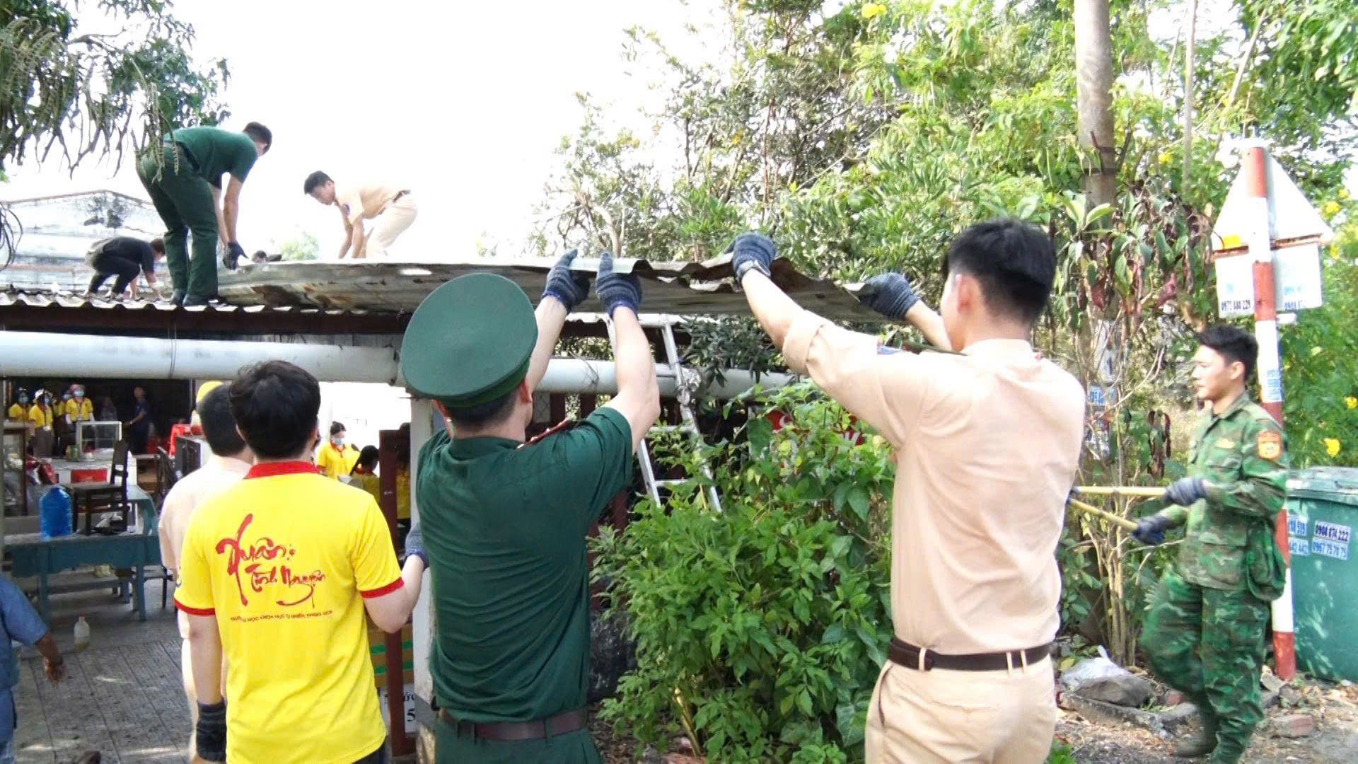 Tại nhà ông Bảo Mỹ, ở ấp An Điền, gần 60 đoàn viên, thanh niên của các đơn vị tham gia sơn mới toàn bộ căn nhà, thay mái tôn xuống cấp, dọn dẹp nhà cửa, phát quang, làm sạch khu vực xung quanh nhà. Các phần việc được thực hiện khẩn trương, trách nhiệm, thể hiện tinh thần sẻ chia, tương thân tương ái của tuổi trẻ các đơn vị trong những ngày Tết đến, xuân về.