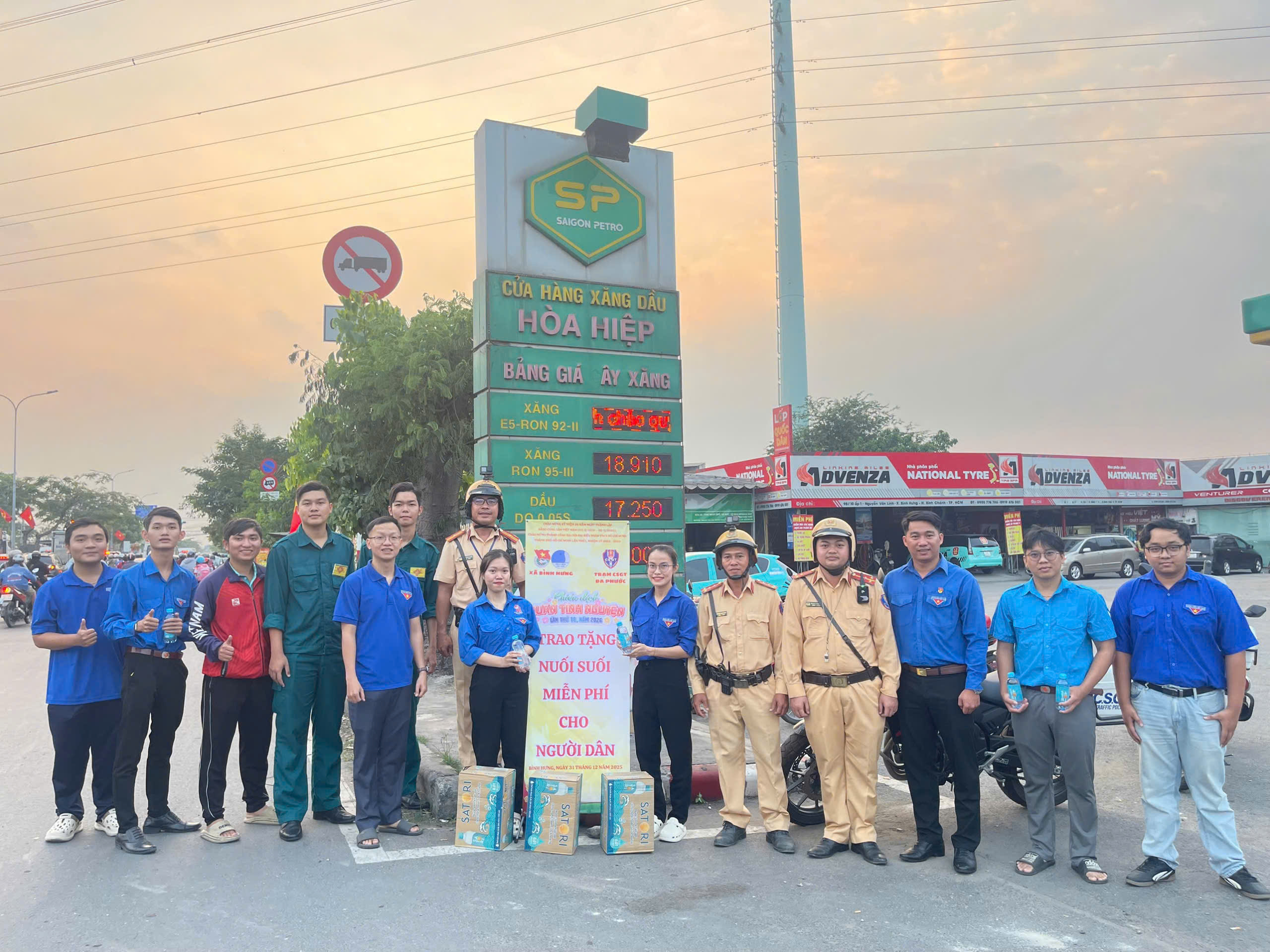 Chiều ngày 31/12/2025, trên đường Nguyễn Văn Linh (đoạn qua Xã Bình Hưng), Chi đoàn Trạm CSGT Đa Phước phối hợp với Đoàn Thanh niên xã Bình Hưng tổ chức phát tặng hơn 5.000 chai nước suối miễn phí cho người dân về quê nghỉ Tết Dương lịch năm 2026.