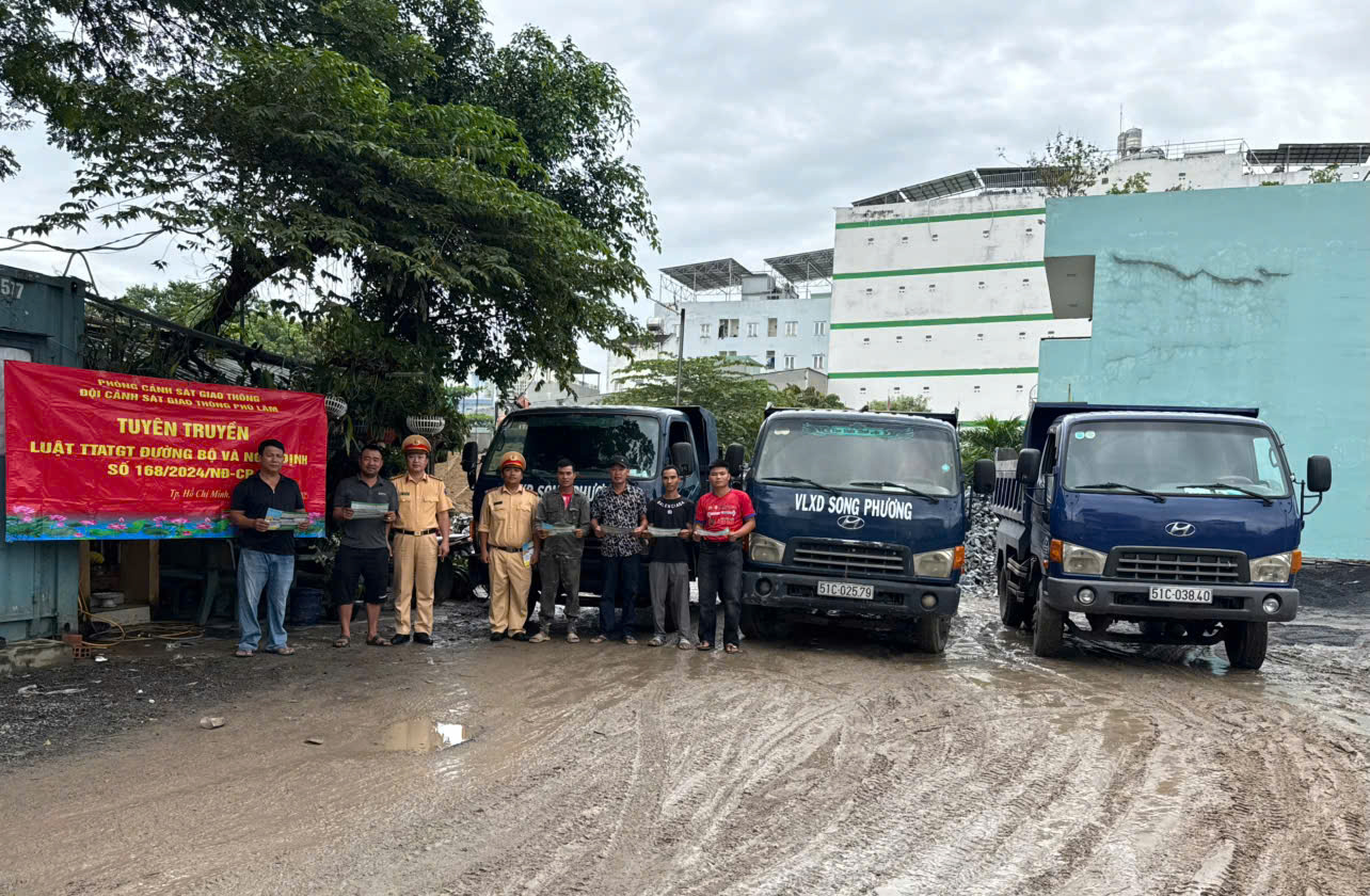 Vào lúc 08h30 ngày 26/9/2025, Đội CSGT Phú Lâm đã tổ chức buổi tuyên truyền pháp luật giao thông cho 06 người điều khiển xe ô tô tải ben thuộc Công ty TNHH Dịch vụ Xây dựng Thương mại Song Phương (số 389/9 đường Lê Trọng Tấn, phường Tân Sơn Nhì, TP. Hồ Chí Minh). Buổi tuyên truyền tập trung vào chủ đề "Tuyên truyền Luật Trật tự, an toàn giao thông đường bộ và Nghị định số 168/2024/NĐ-CP".