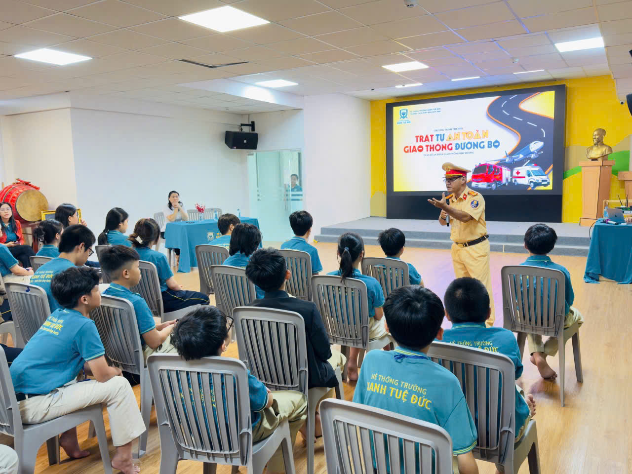 Vào lúc 14h00 ngày 26/9/2025, Đội Cảnh sát Giao thông Phú Lâm đã tổ chức buổi tuyên truyền pháp luật về Luật Trật tự, an toàn giao thông đường bộ tại Trường THCS – THPT Đào Duy Từ (số 255 đường Nguyễn Văn Luông, phường Phú Lâm, TP. Hồ Chí Minh).
