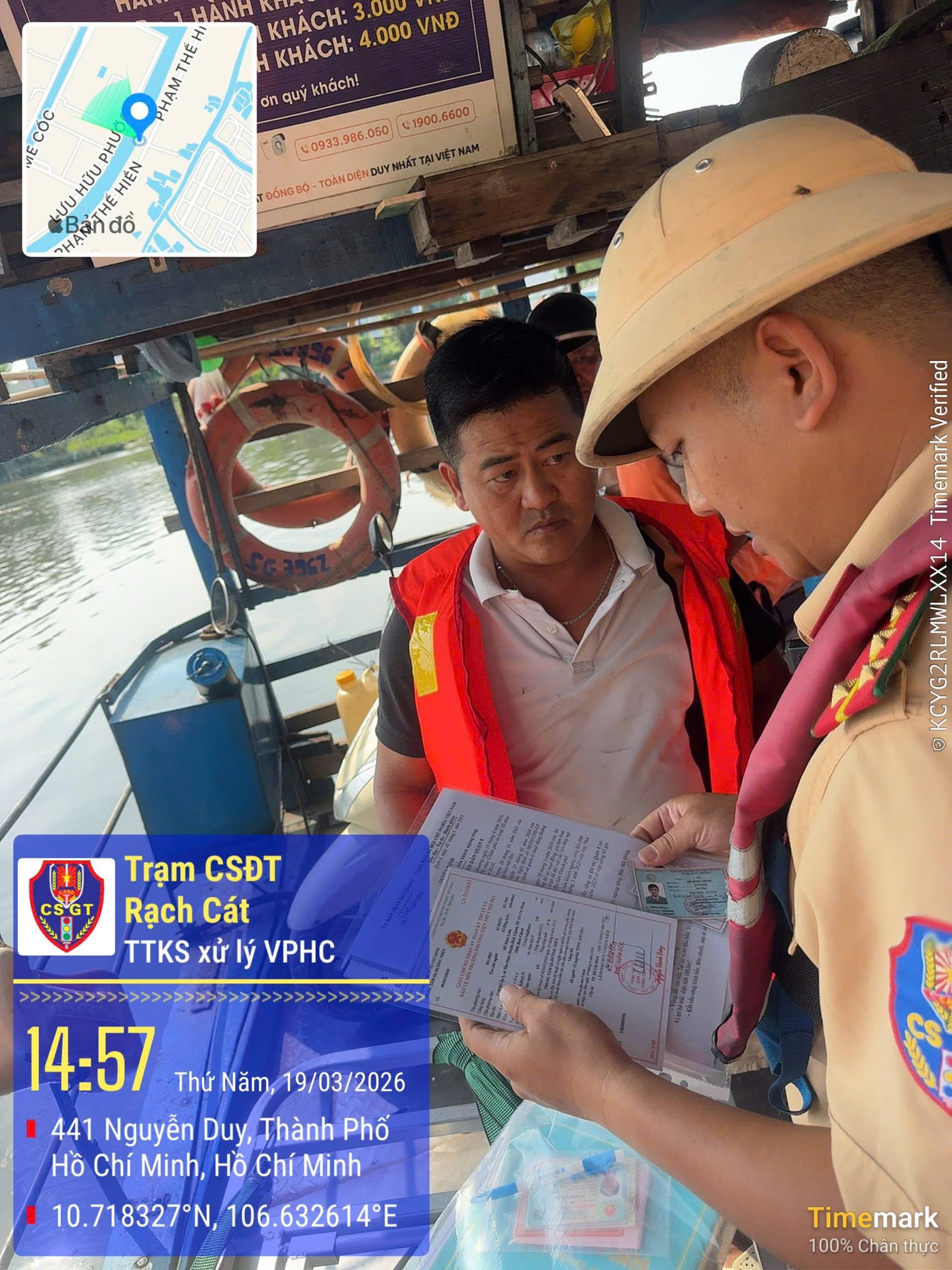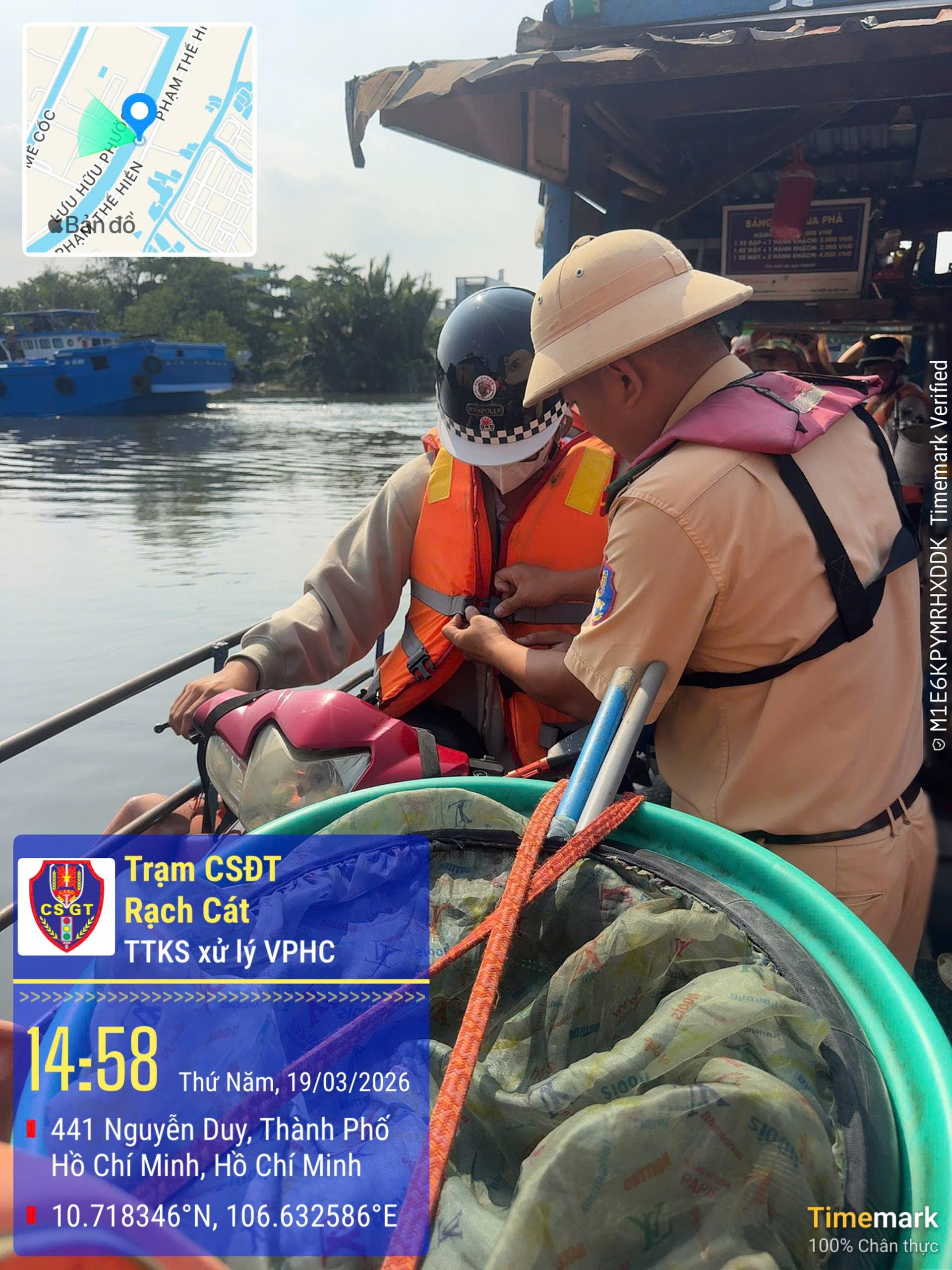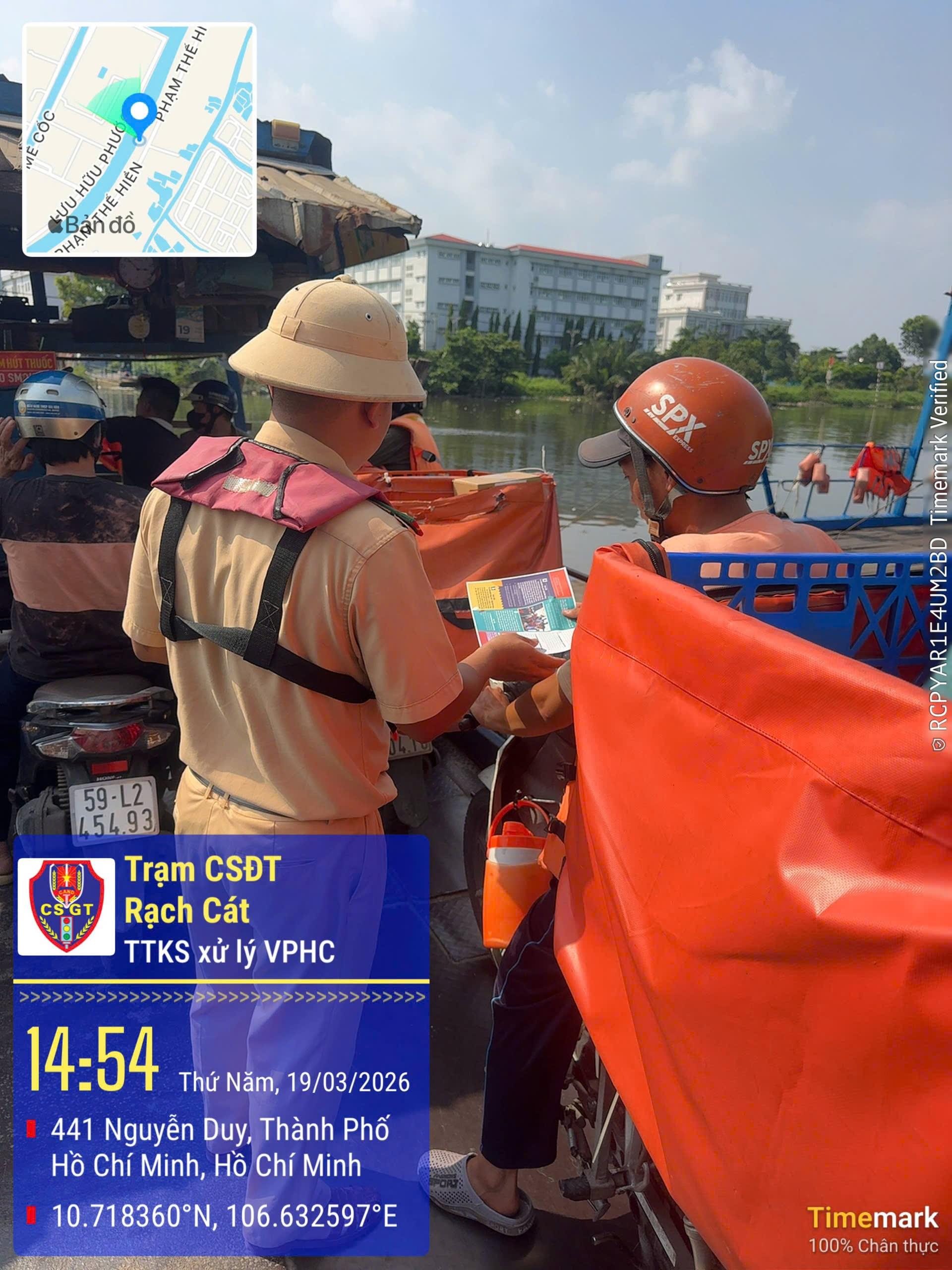 Nhằm nâng cao nhận thức, ý thức chấp hành pháp luật về trật tự an toàn giao thông đường thủy nội địa cho người dân, chiều ngày 19/3/2026, tại bến đò ngang Hội Đồng, phường Phú Định, Thành phố Hồ Chí Minh, Trạm Cảnh sát đường thủy Rạch Cát đã tổ chức tuyên truyền pháp luật kết hợp trao tặng áo phao cứu sinh cho các chủ bến, thuyền trưởng và hành khách đi đò trên địa bàn.