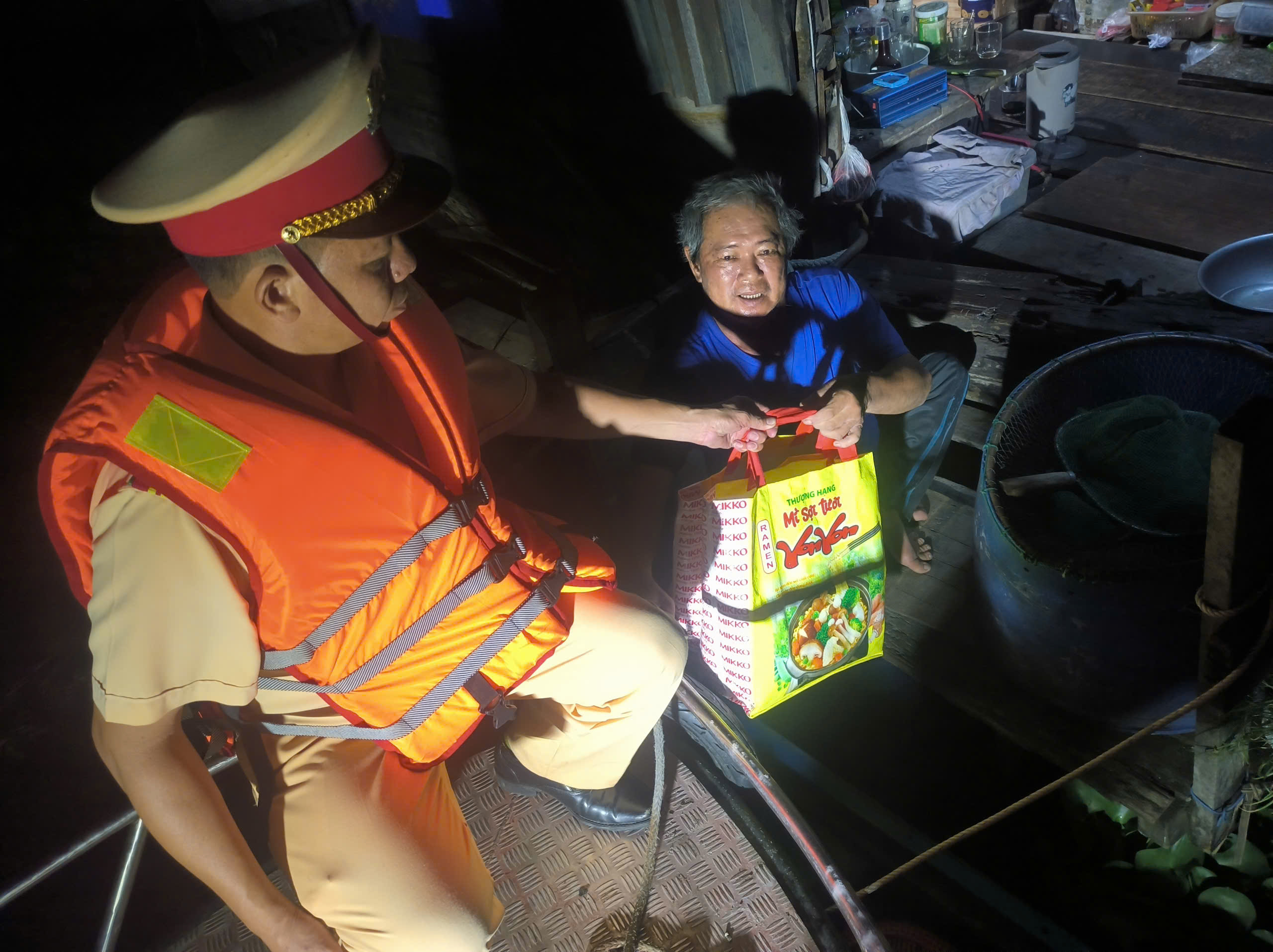 Ngoài những phần quà nhu yếu phẩm phục vụ cho cuộc sống hàng ngày, CBCS của Trạm cũng ân cần trao đổi, dặn dò những điều cần thiết để người dân nhận thức về việc đảm bảo an toàn cho bản thân và những người xung quanh khi sinh sống, lưu thông trên các phương tiện dân sinh; đặc biệt căn dặn việc chú trọng đảm bảo an toàn cho các em nhỏ, phòng tránh đuối nước cho các em và trang bị áo phao cứu sinh.