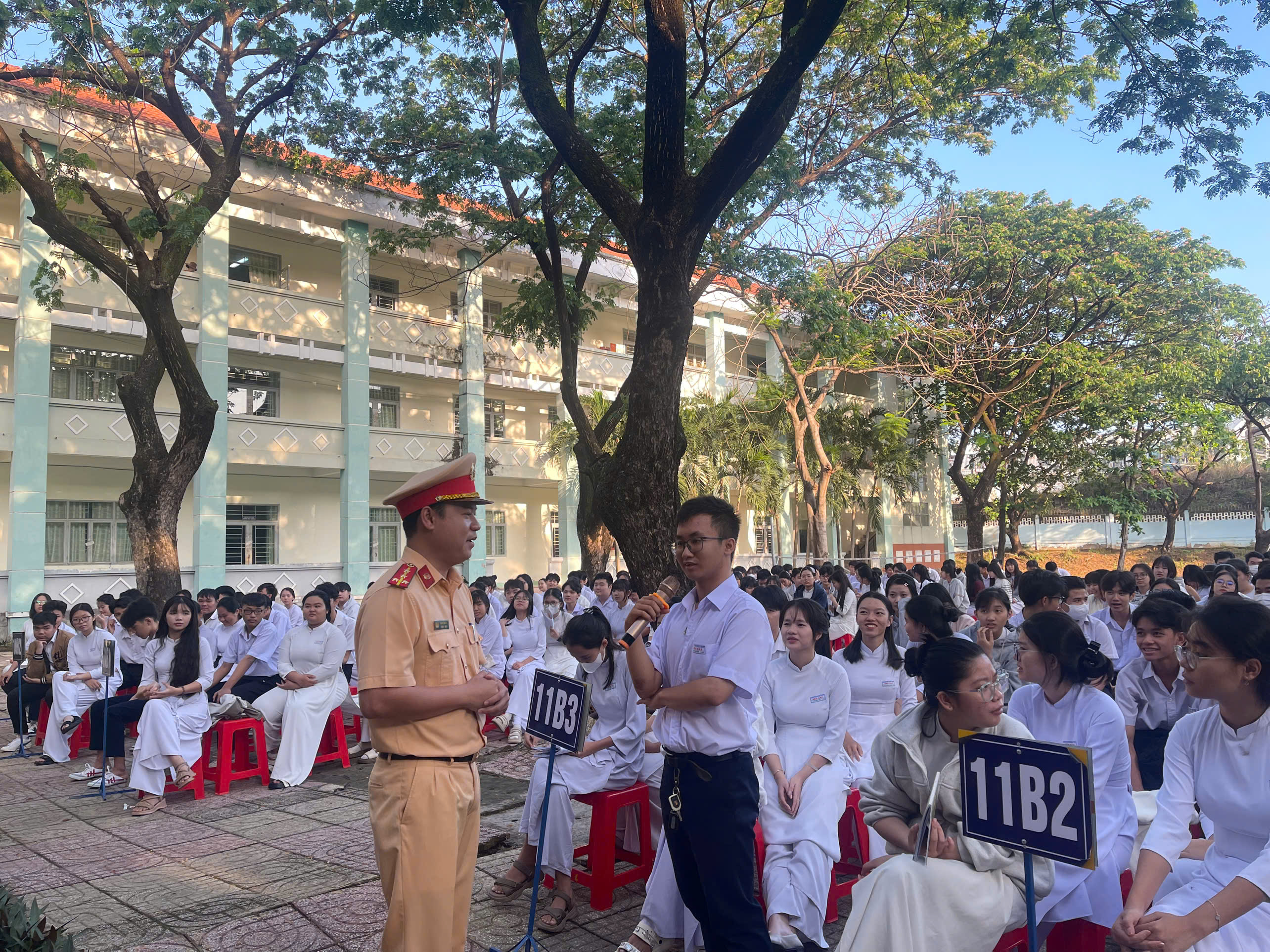 Tại buổi tuyên truyền, cán bộ Cảnh sát giao thông đã trình chiếu video clip từ các vụ tai nạn giao thông thực tế, phổ biến những quy định cơ bản của pháp luật về trật tự, an toàn giao thông. Cùng với đó, phân tích các lỗi vi phạm phổ biến của học sinh như: không đội mũ bảo hiểm; chở quá số người quy định; đi hàng hai, hàng ba; điều khiển phương tiện khi chưa đủ tuổi theo quy định...
